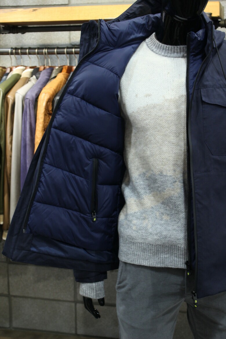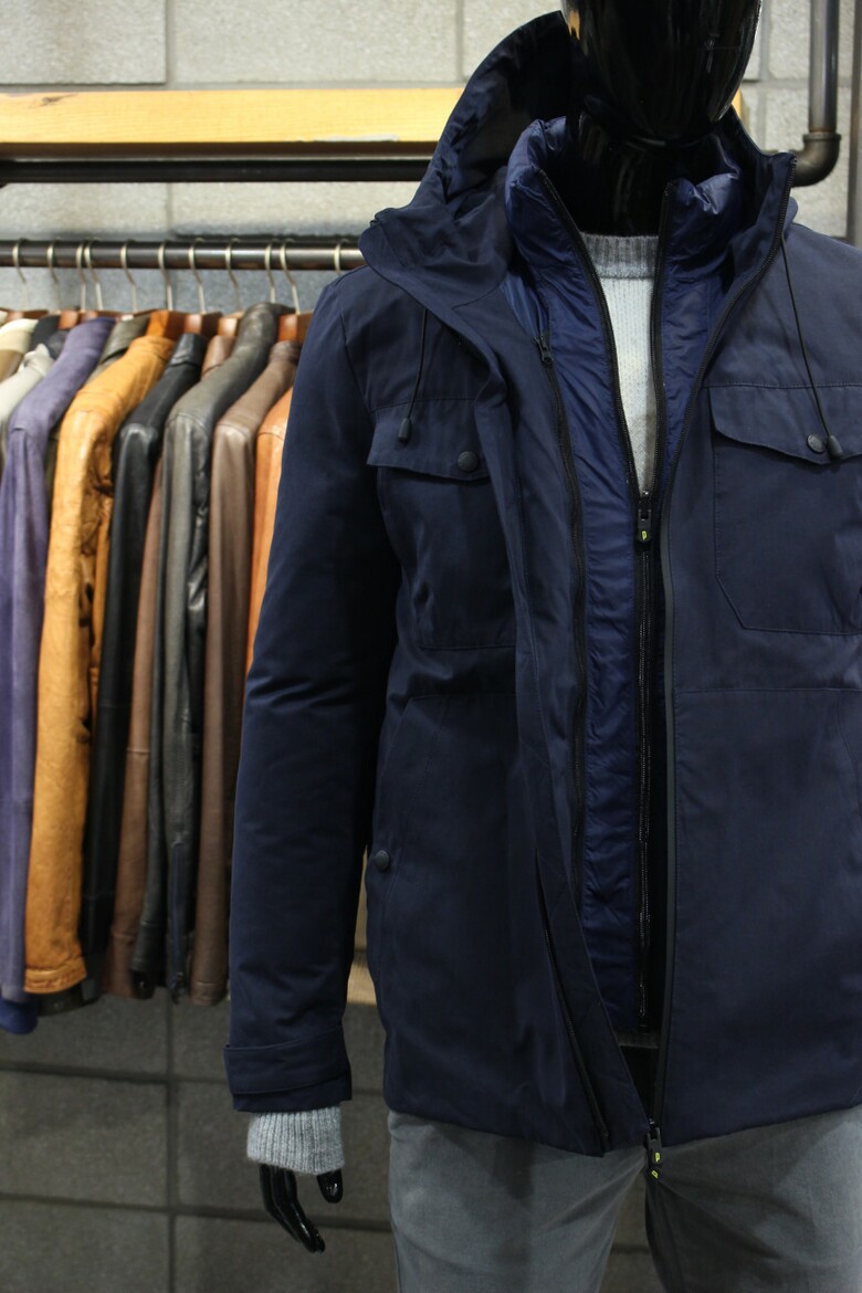 빈티지한 네이비컬러가 매력적인 에코다운 2IN1후드점퍼입니다