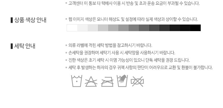 6. 세탁방법 및 취급시 주의사항 | 미온수,중성세제,손세탁 및 케어라벨 세탁정보 참고 |