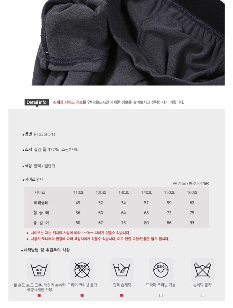 1. 제품 소재 (섬유의 조성 또는 혼용률을 백분율로 표시, 기능성인 경우 성적서 또는 허가서) | 겉감:폴리77% 스판23% |