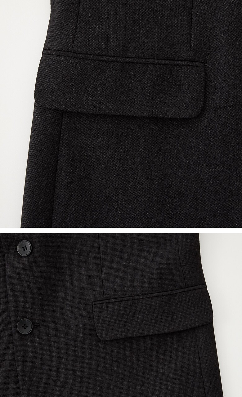 1. 제품 소재 (섬유의 조성 또는 혼용률을 백분율로 표시, 기능성인 경우 성적서 또는 허가서) | 겉감 : 모(양모)(97%) , 폴리우레탄(3%) 안감 : 폴리에스터(100%) |