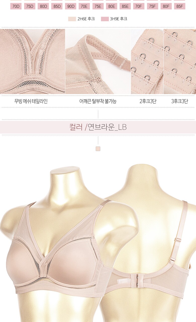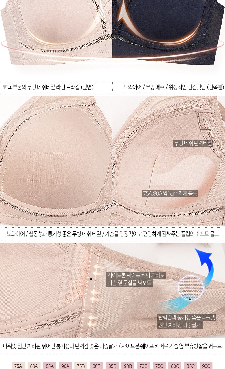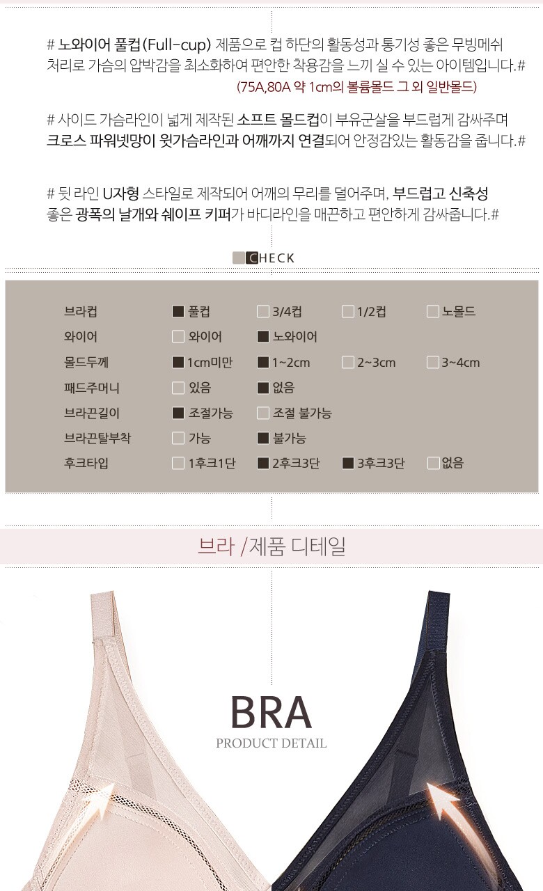 [비너스 자스민] 무빙 메쉬 노와이어 풀컵 몰드 브라 jbr1290