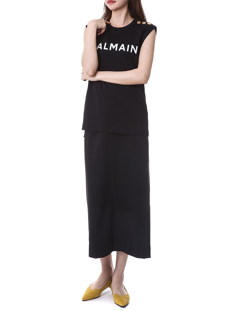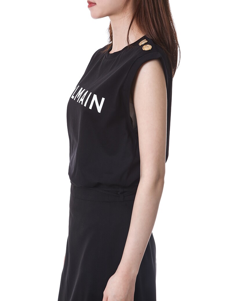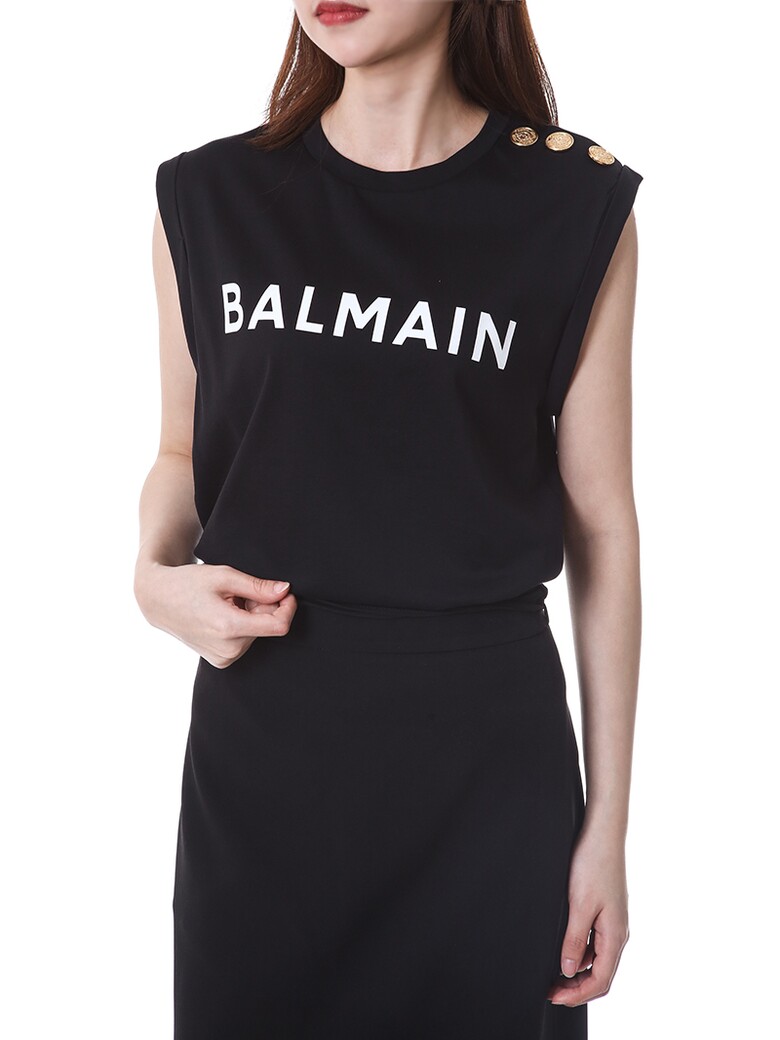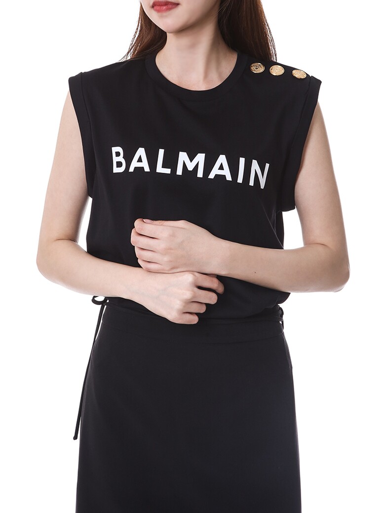 [명품] 발망 골드 숄더버튼 로고 슬리브리스 티셔츠/AF1ED000 BB02 EAB