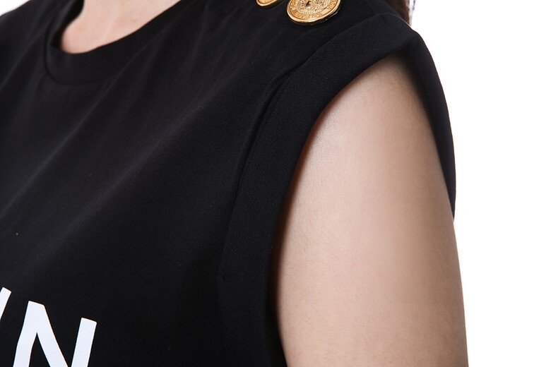 - #리본즈코리아 #AF1ED000BB02EAB #[명품] #발망 #골드 #숄더버튼 #로고 #슬리브리스 #티셔츠/AF1ED000 #BB02 #EAB #여성 #의류 #상의 #티셔츠