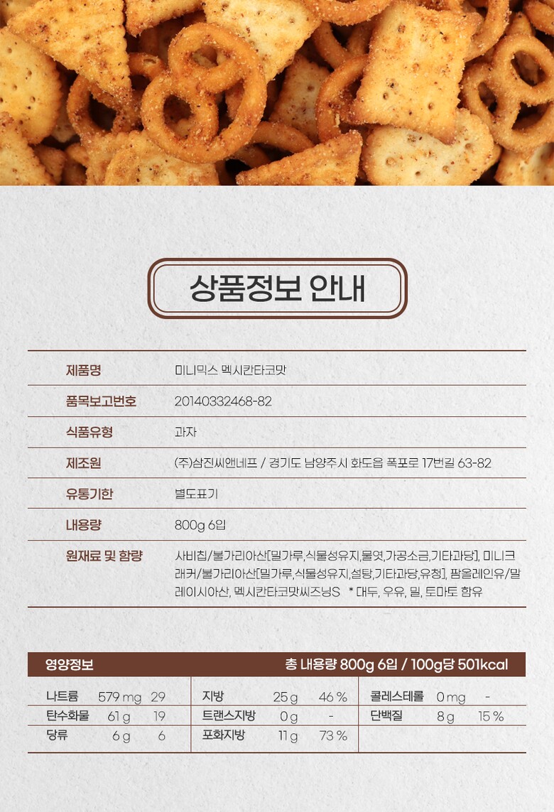 삼진씨앤에프 미니믹스 멕시칸타코맛 800g 6개입 [박스]