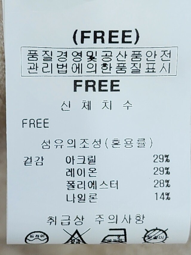 · 안감 : □ 전체 □ 부분 ■ 없음