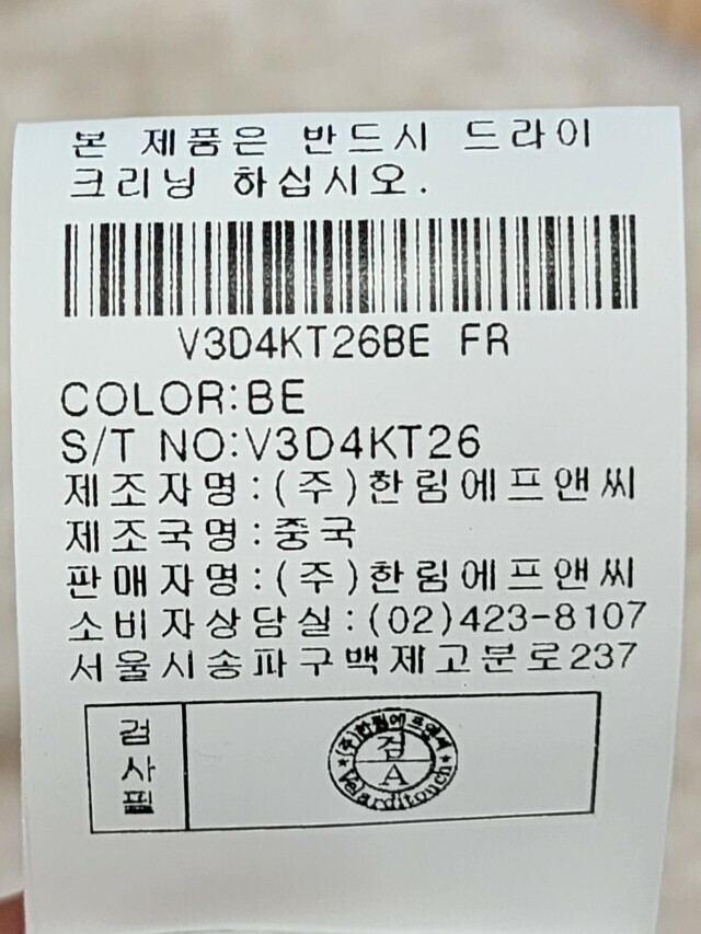 | 7. 세탁방법 및 취급시 주의사항 | 상세페이지 참조 |