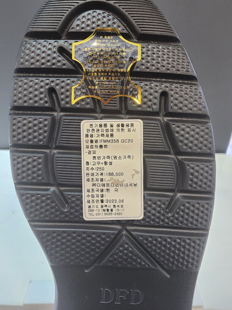 | 1. 제품 소재 (운동화인 경우에는 겉감, 안감을 구분하여 표시) | 소가죽 |