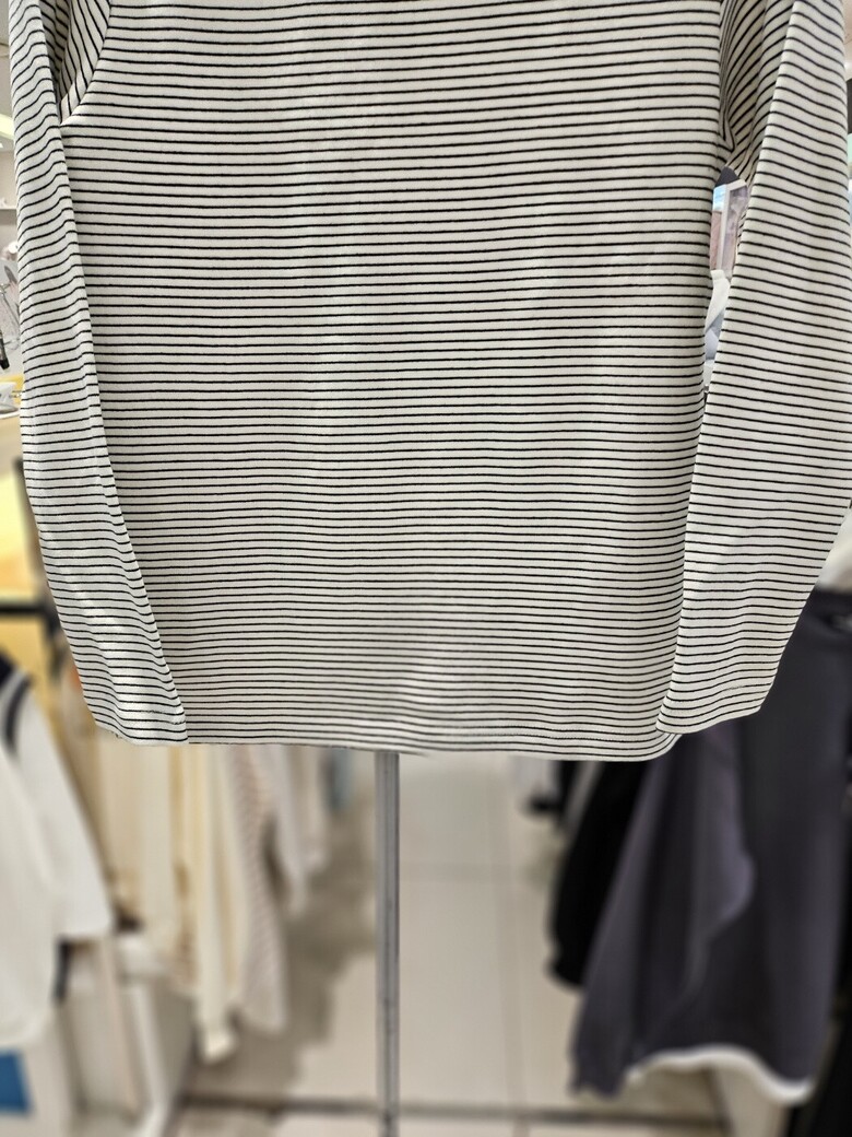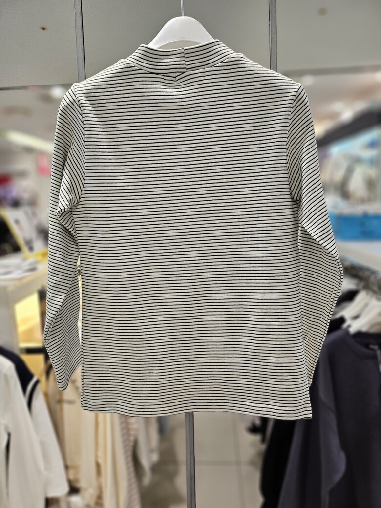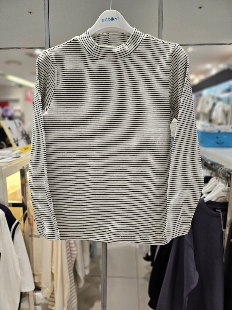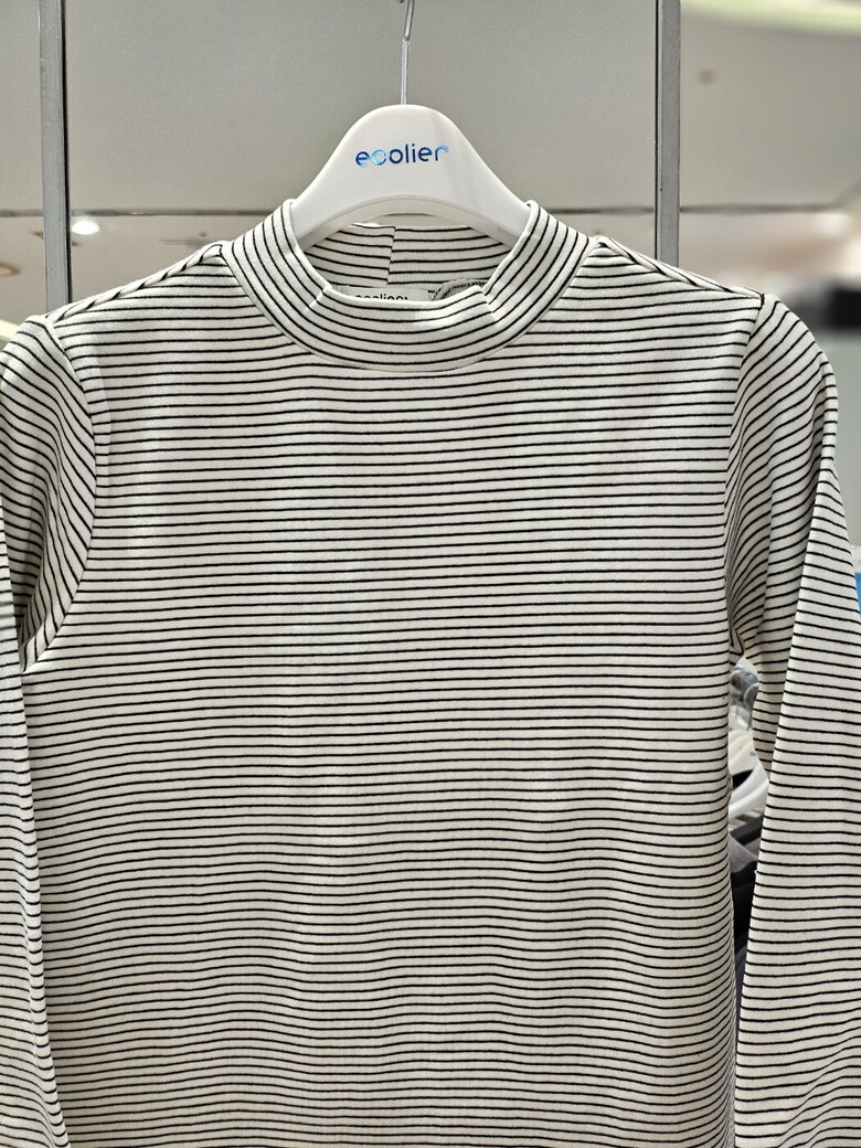 [에꼴리에]23D0452 BK스트라이프 스판 기모 반목티