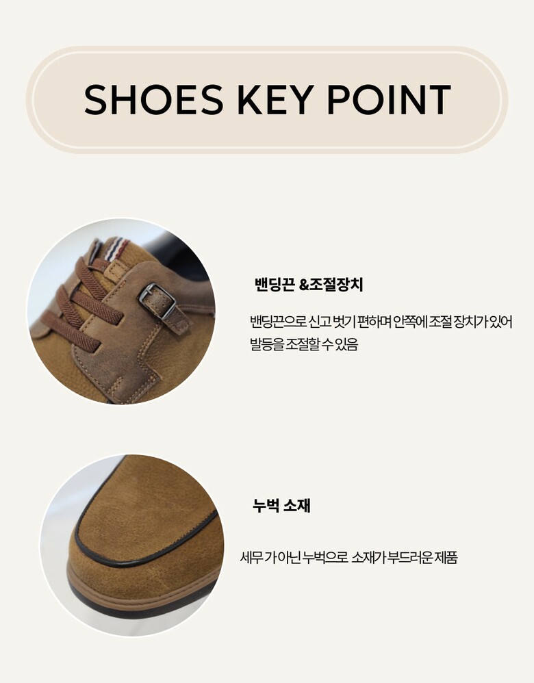 부드러운 누벅 가죽과 뒤부분 쿠션으로 포인트의 준 컴포트화