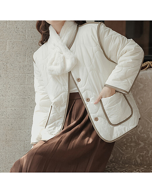 - 후드 떡볶이 단추 롱 누빔 코트_O2511CT002D