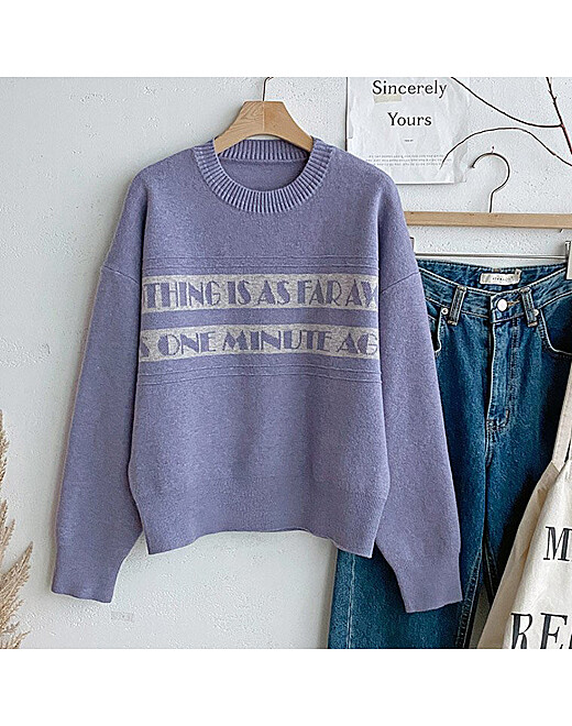 - 비비드 뽀글이 영문 라운드넥 니트_O2511KN060D