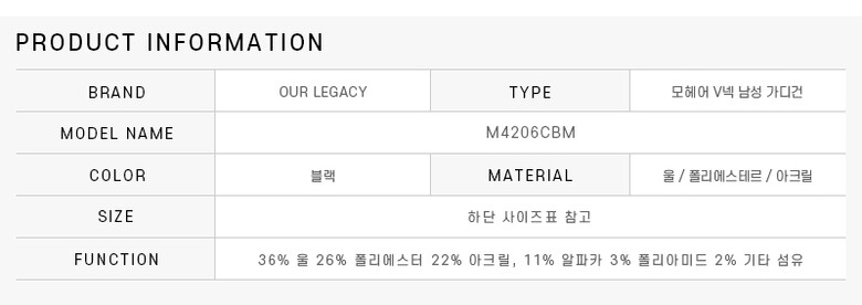 아워레가시 OUR LEGACY M4206CBM 모헤어 루즈핏 남성 가디건