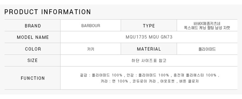 바버 BARBOUR MQU1735 MQU GN73 바버x메종키츠네 콜라보 남성 자켓