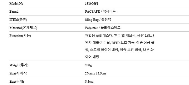 | 5. 제조사 | 팩세이프/MACHO-병행수입 |