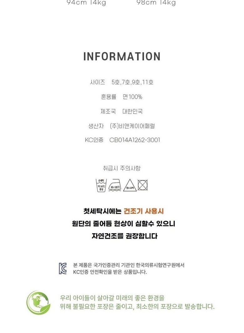 1. 제품 소재 (섬유의 조성 또는 혼용률을 백분율로 표시, 기능성인 경우 성적서 또는 허가서) | 상세페이지 참조 |