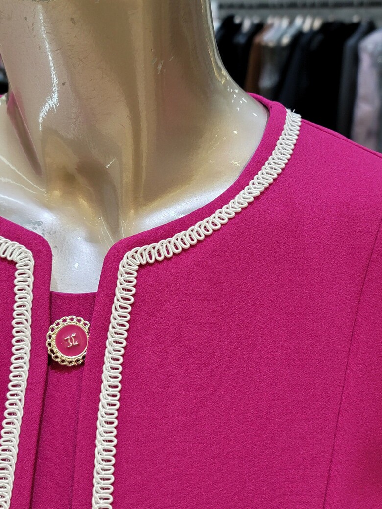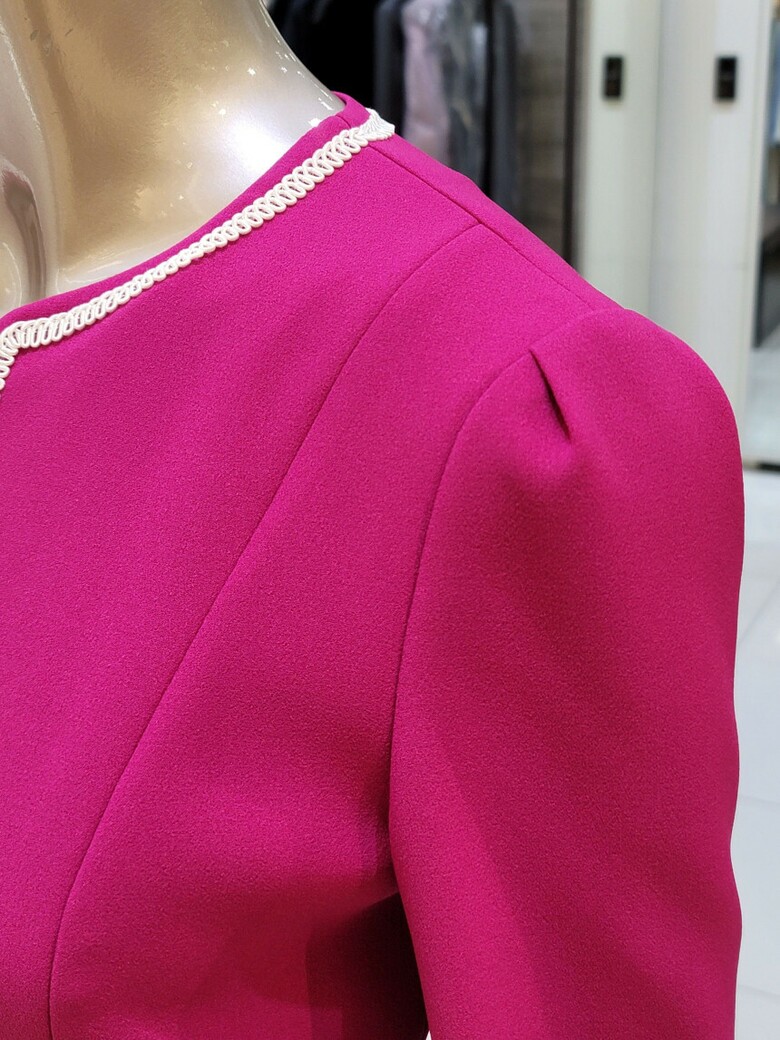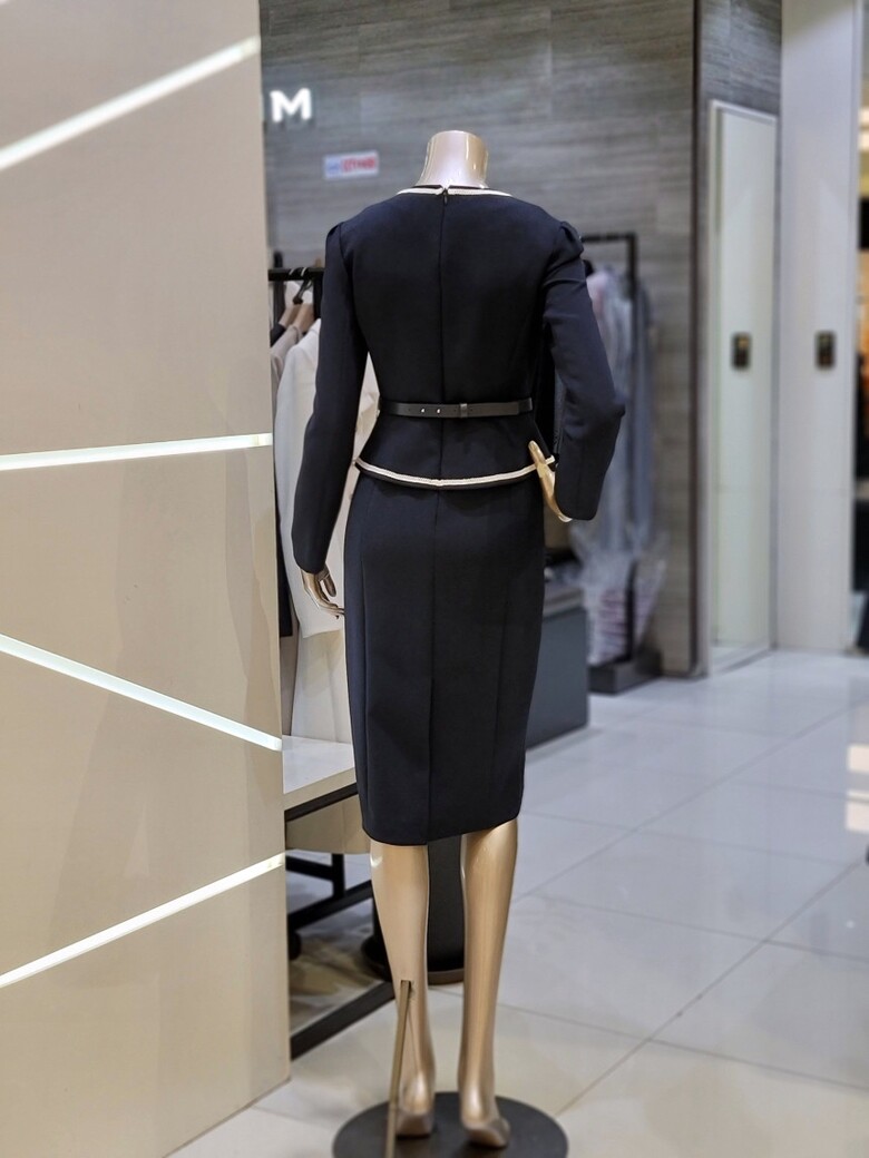 우아한 감각이 돋보이며 라인 배색 디테일과 버튼 장식으로 포인트를 주어