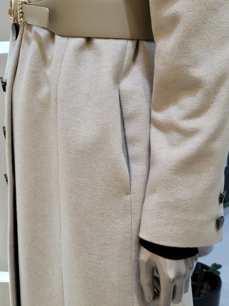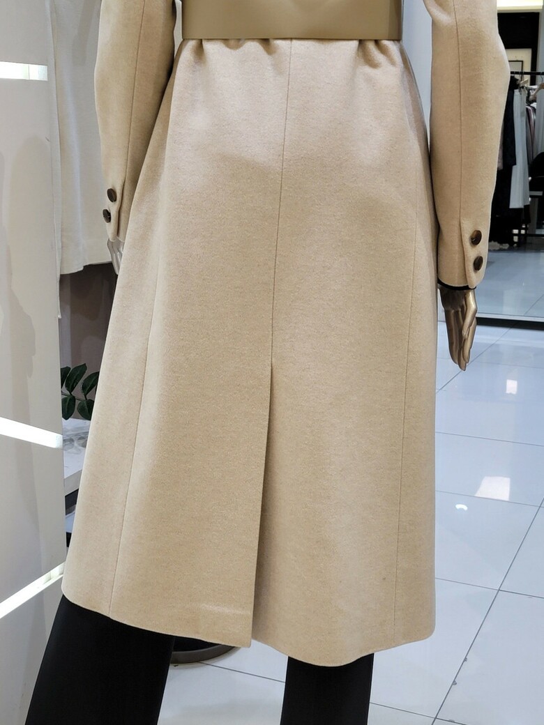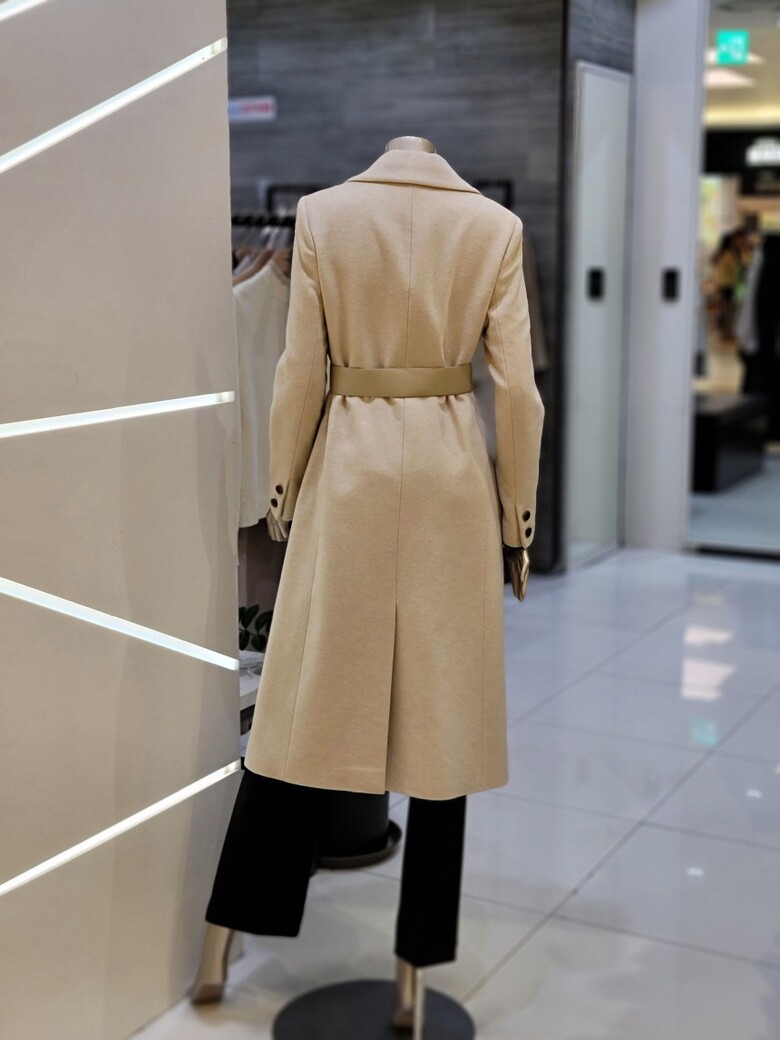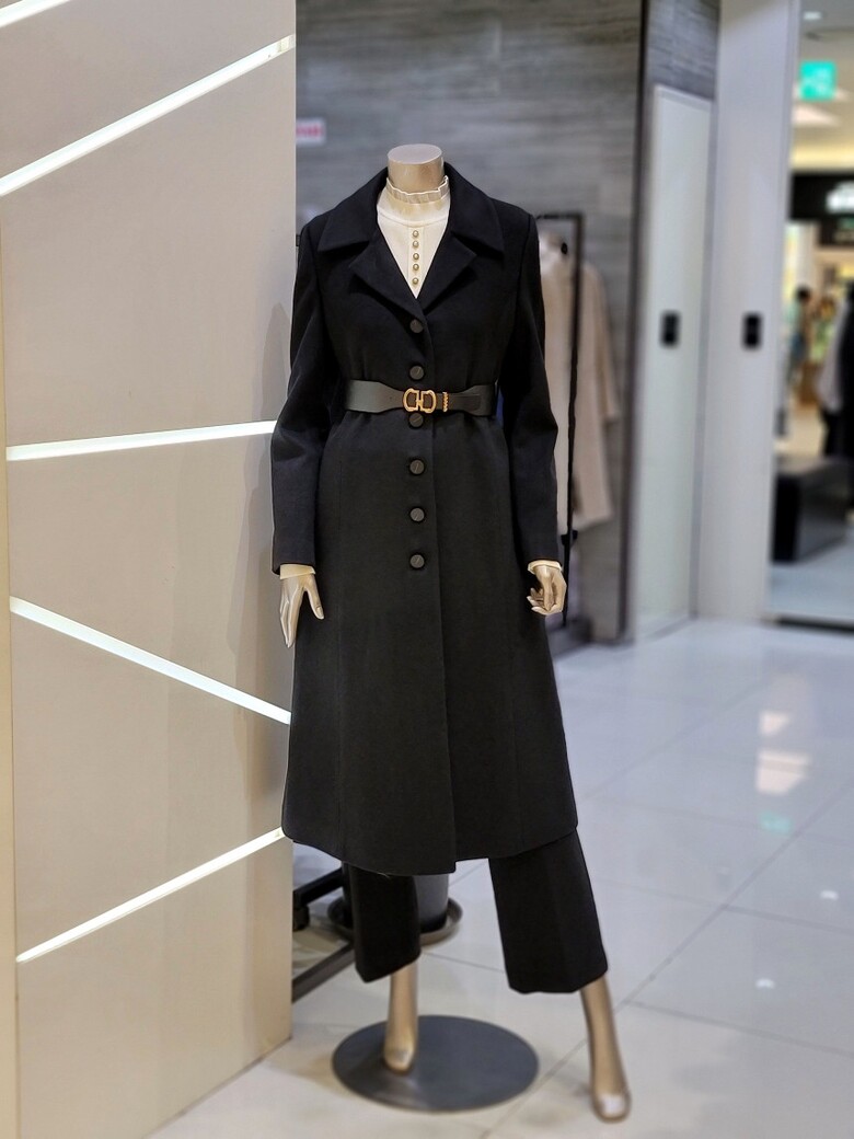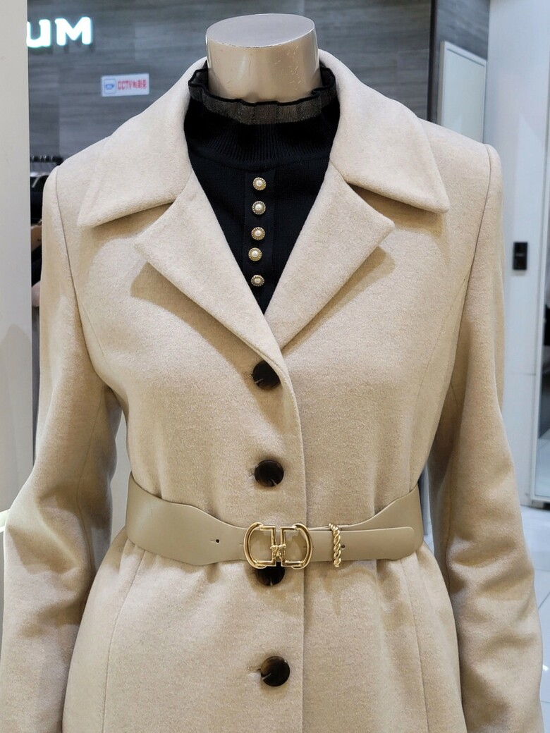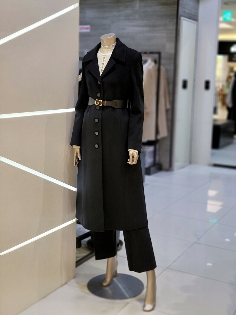 페미닌한 무드의 슬림 A 라인 롱 코트입니다.