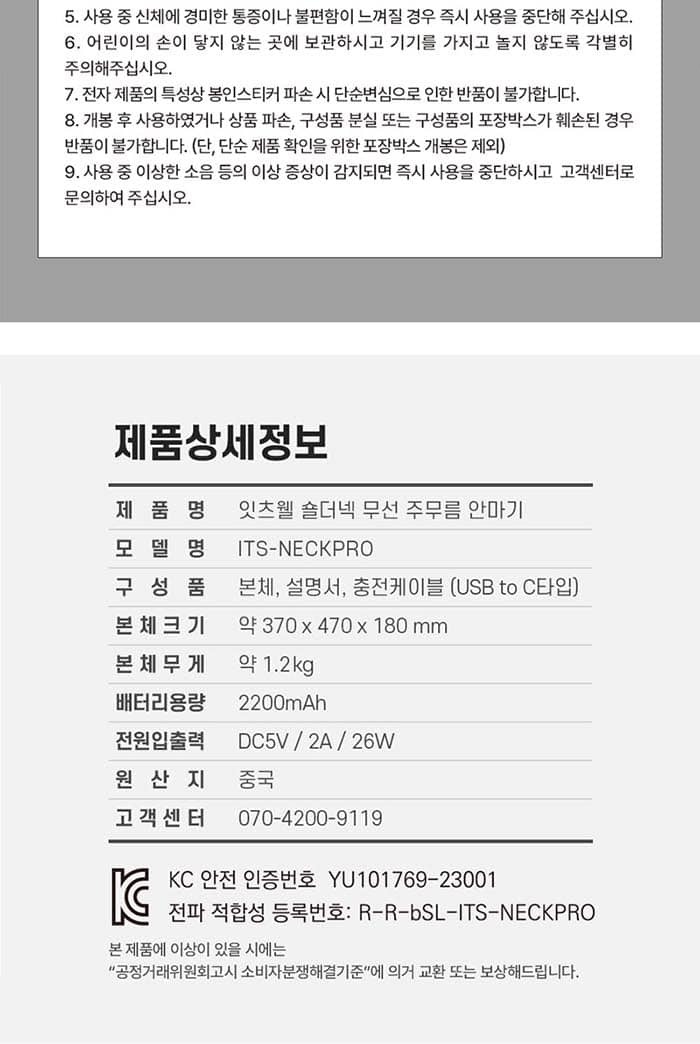 잇츠웰 숄더넥 무선주무름안마기 ITS-NECKPRO