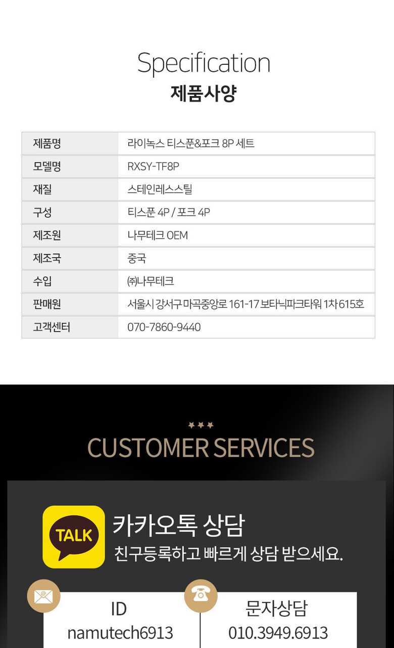 [라이녹스] 티스푼&포크 8p 세트 RXSY-TF8P
