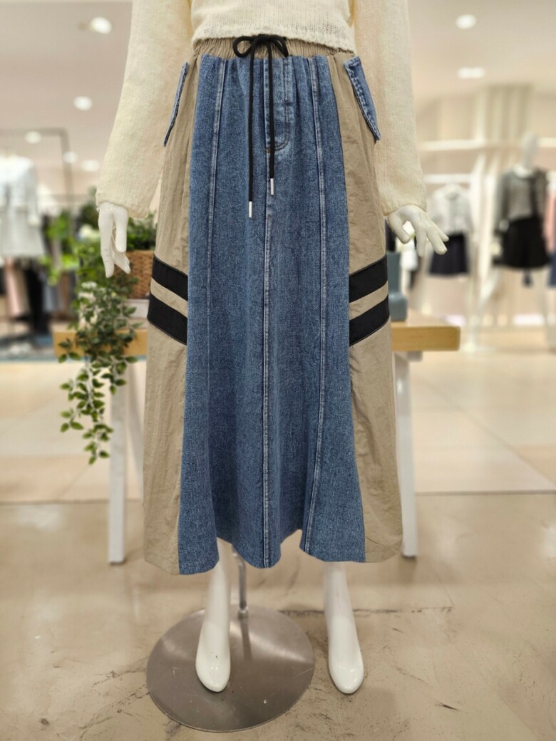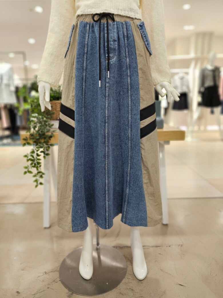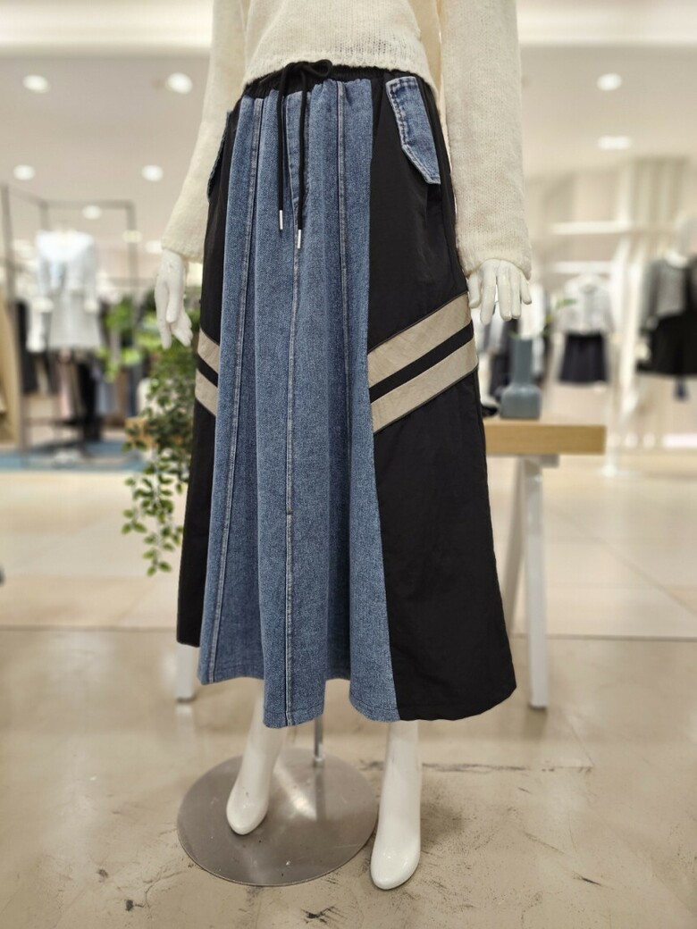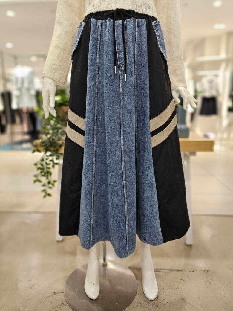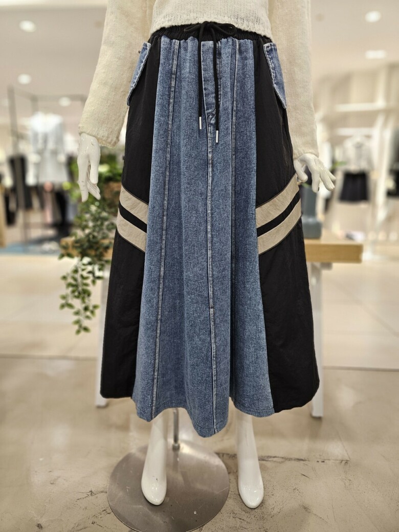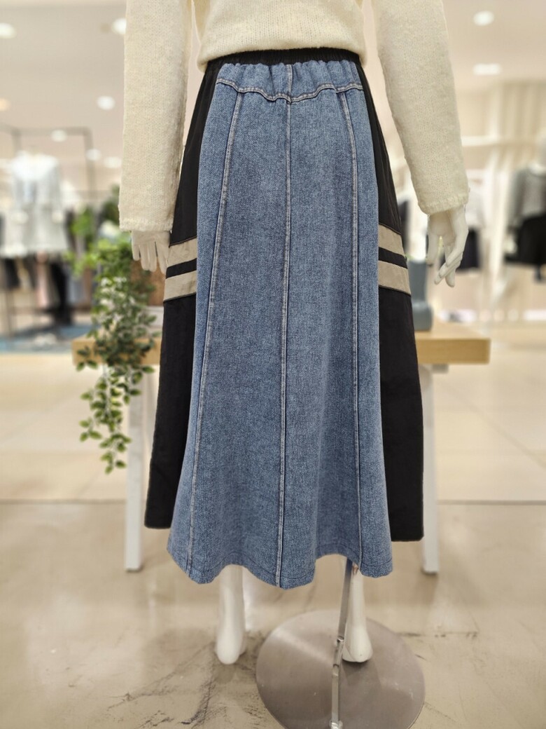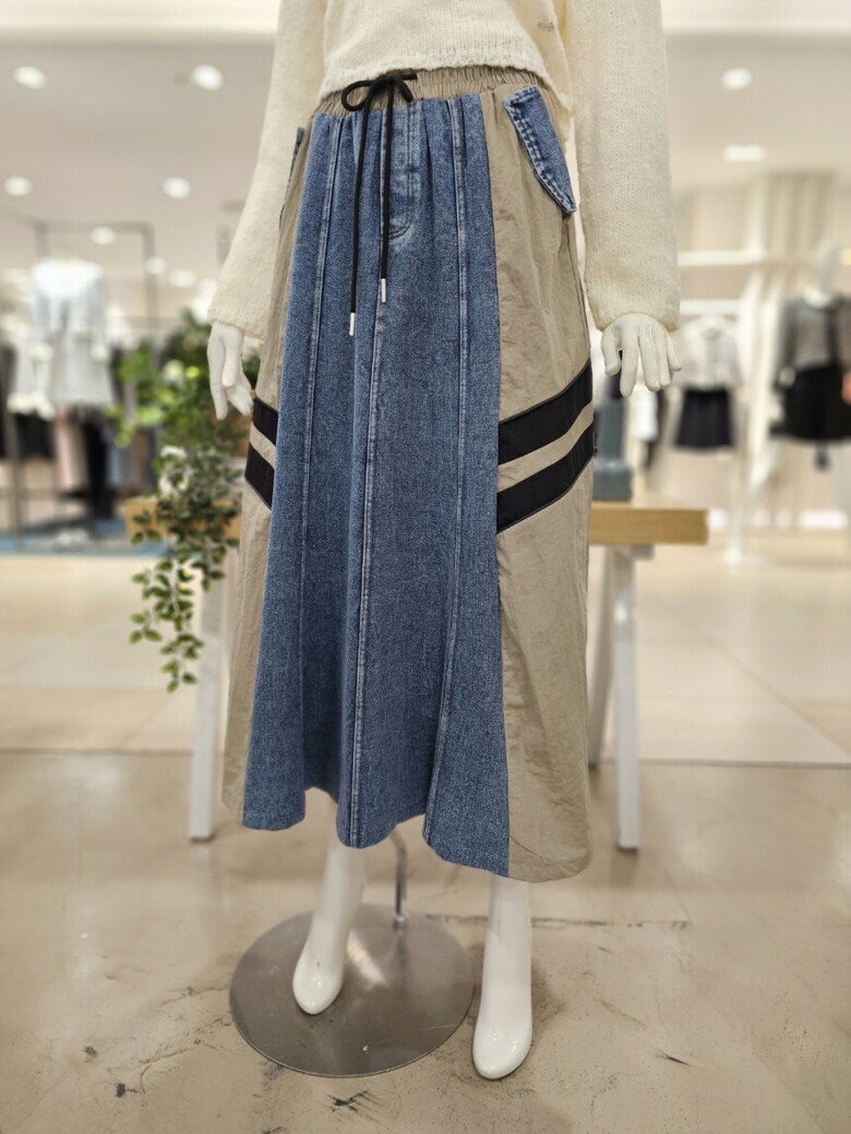 포커스 배색 콤비 청 스커트 FF4H3SK30772