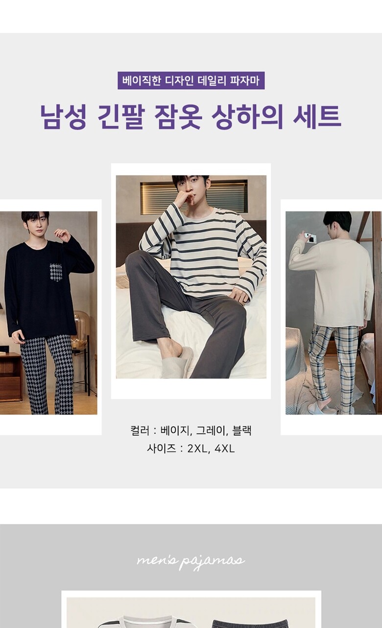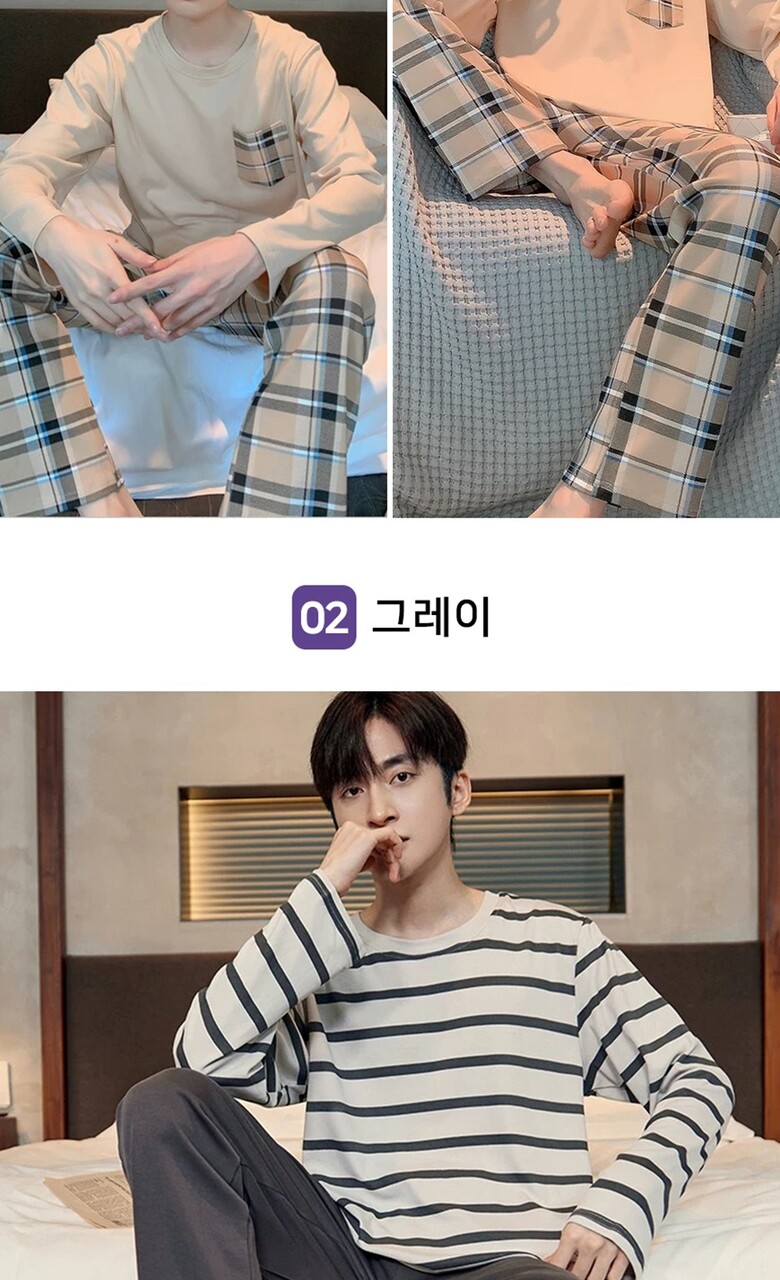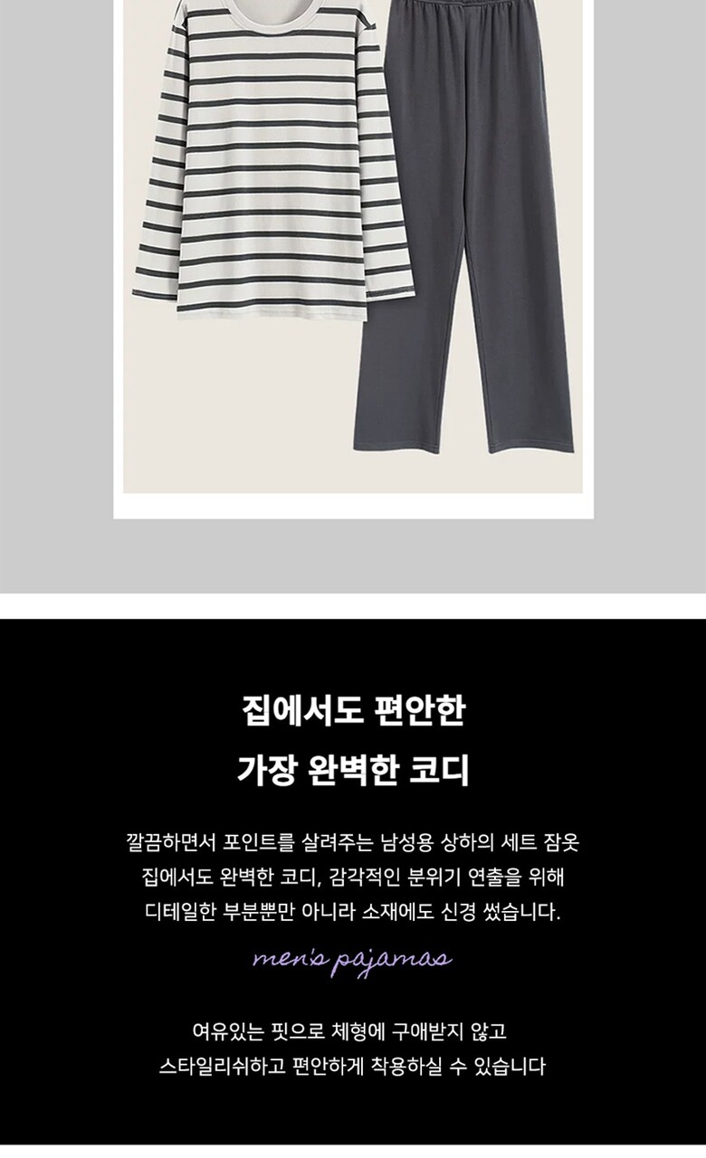 [상하세트] 남성 데일리 편한잠옷 긴팔+긴바지 홈웨어세트 3컬러