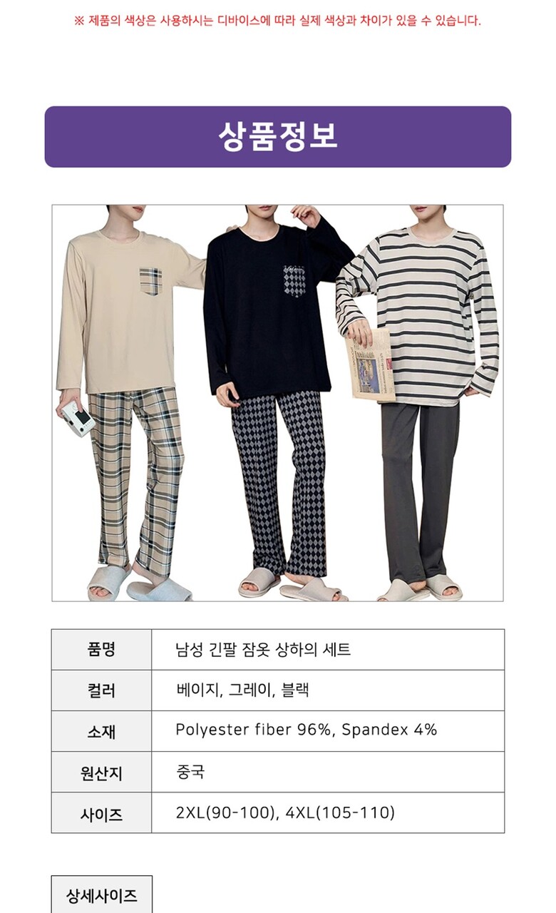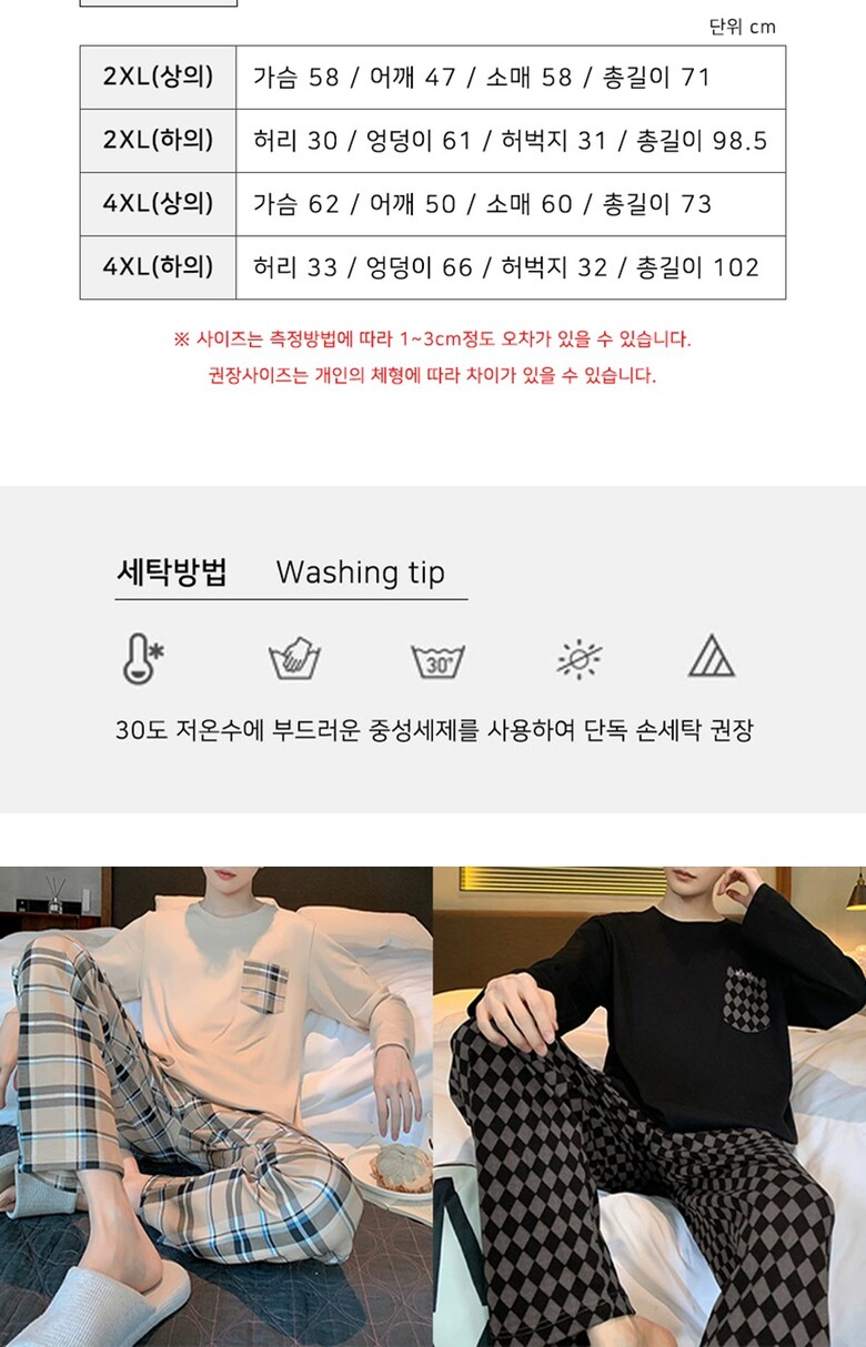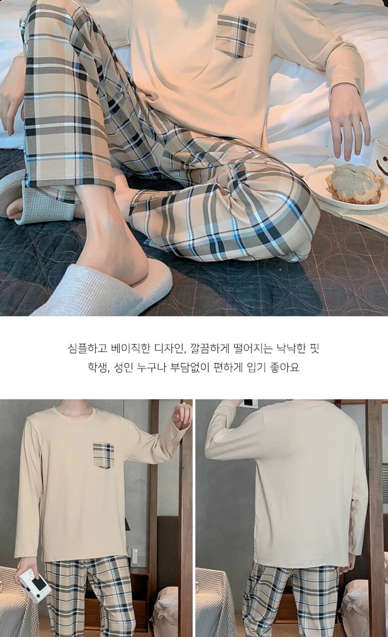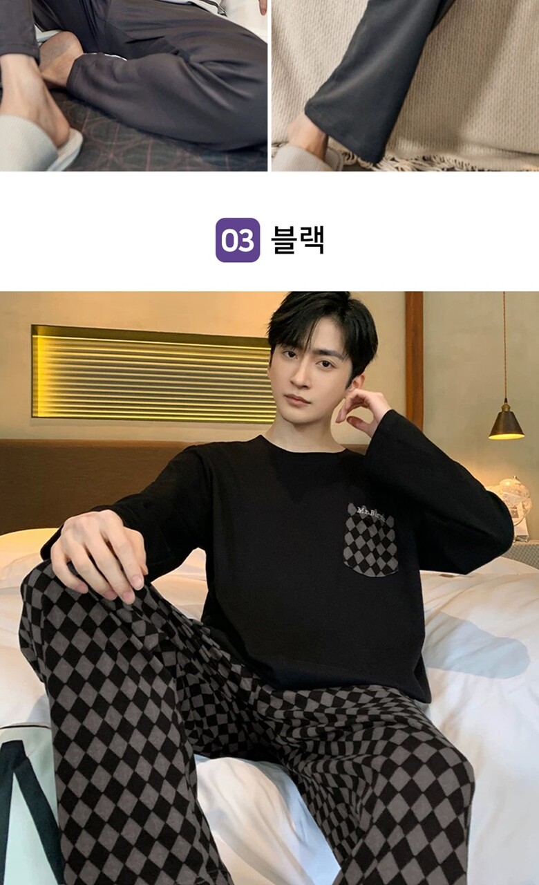 [상하세트] 남성 데일리 편한잠옷 긴팔+긴바지 홈웨어세트 3컬러