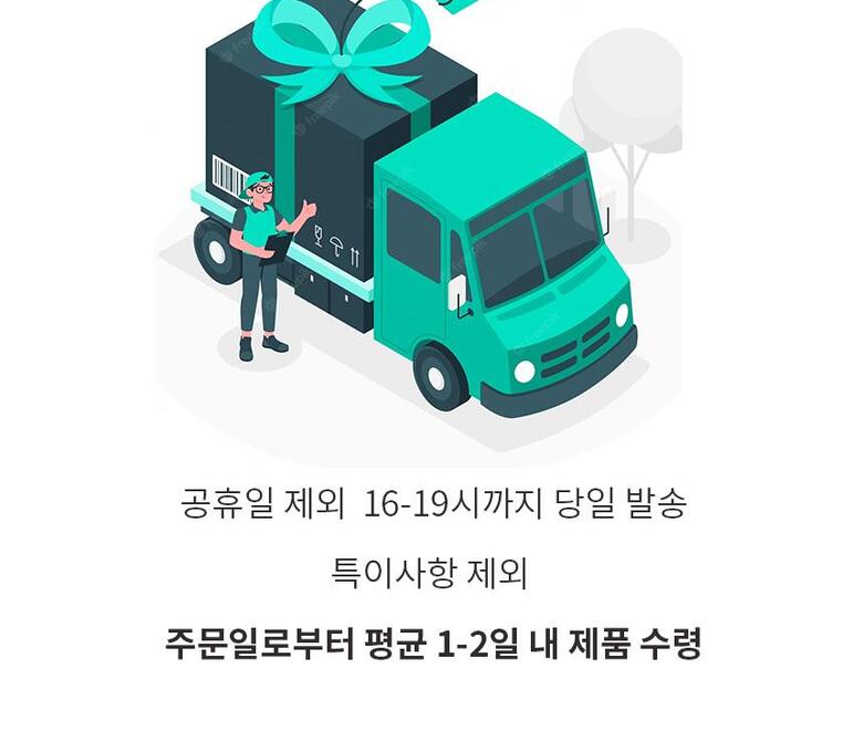 • 모든 규정은 전자상거래법에 의거하며, 택배사정으로 배송이 지연된 경우 재화를 공급받은 날로부터 7일 이내에 반품 가능합니다.
