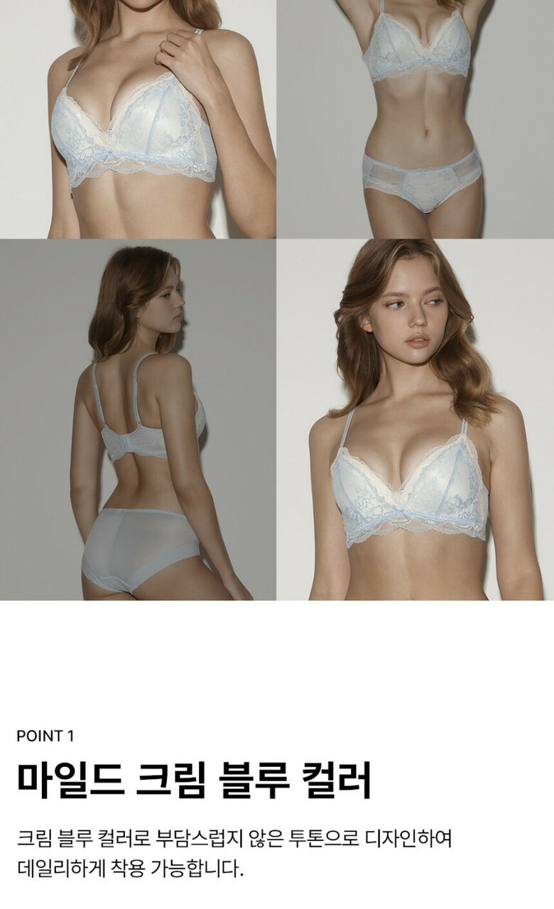 에블린 메르메 투톤브라렛 헴팬티(투톤블루) EBWQFA126H