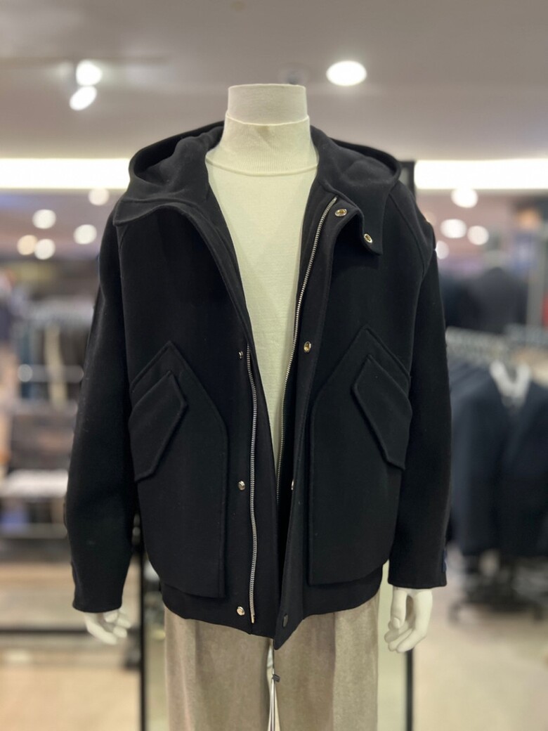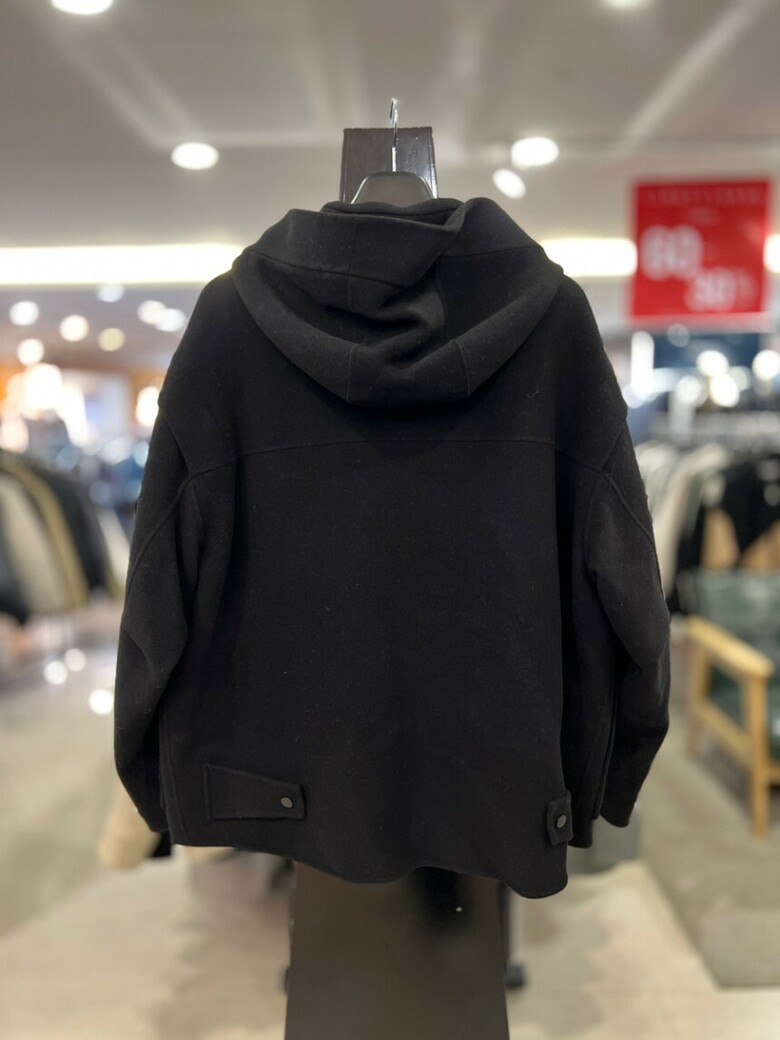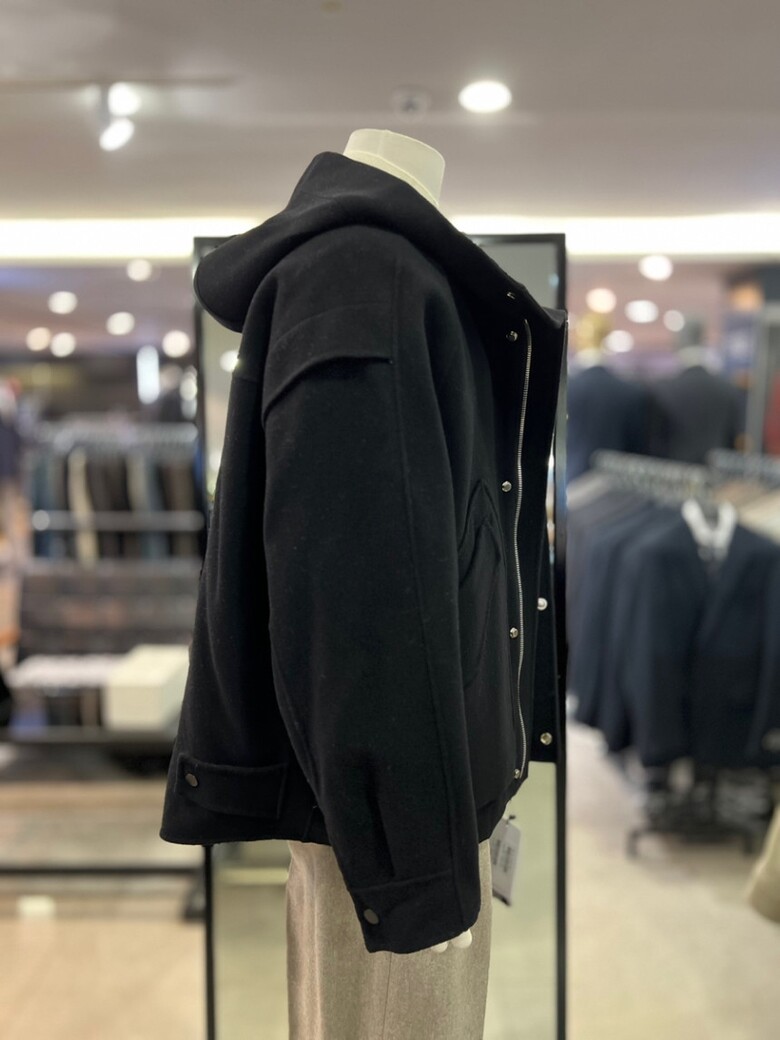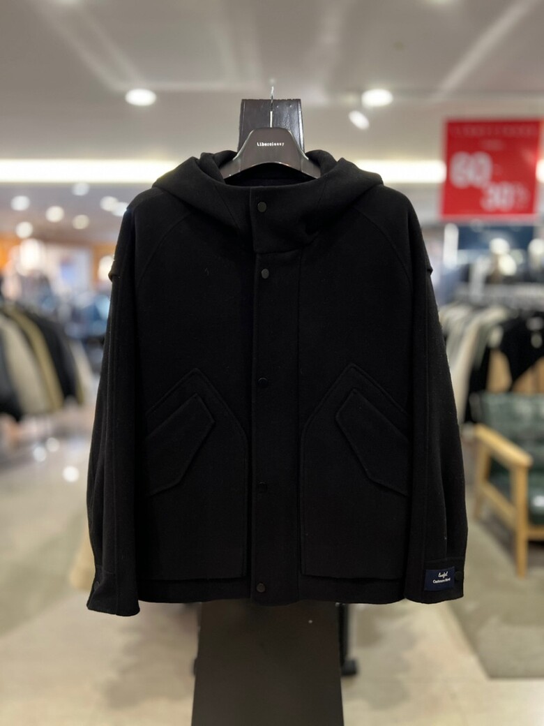 리버클래시 블랙 캐시미어 혼방 구스다운 핸드메이드 숏후드 코트 LKW21493