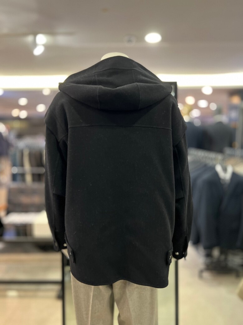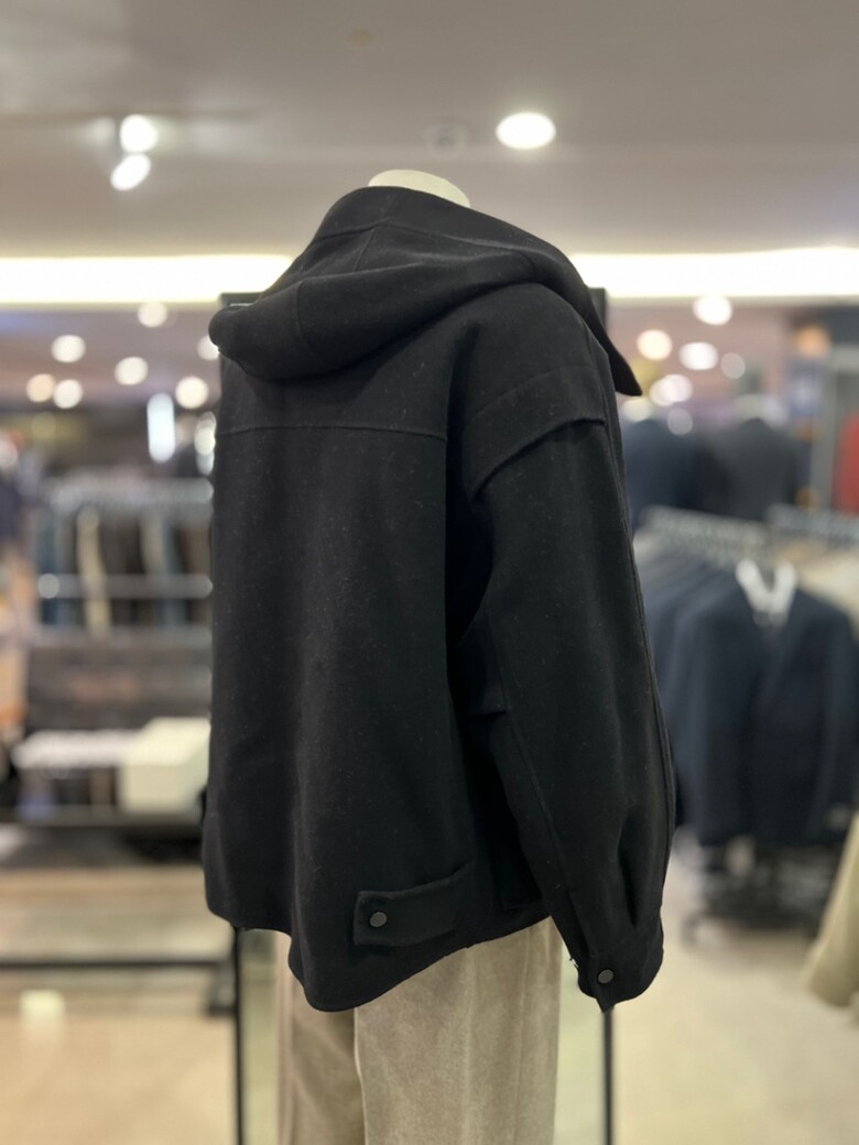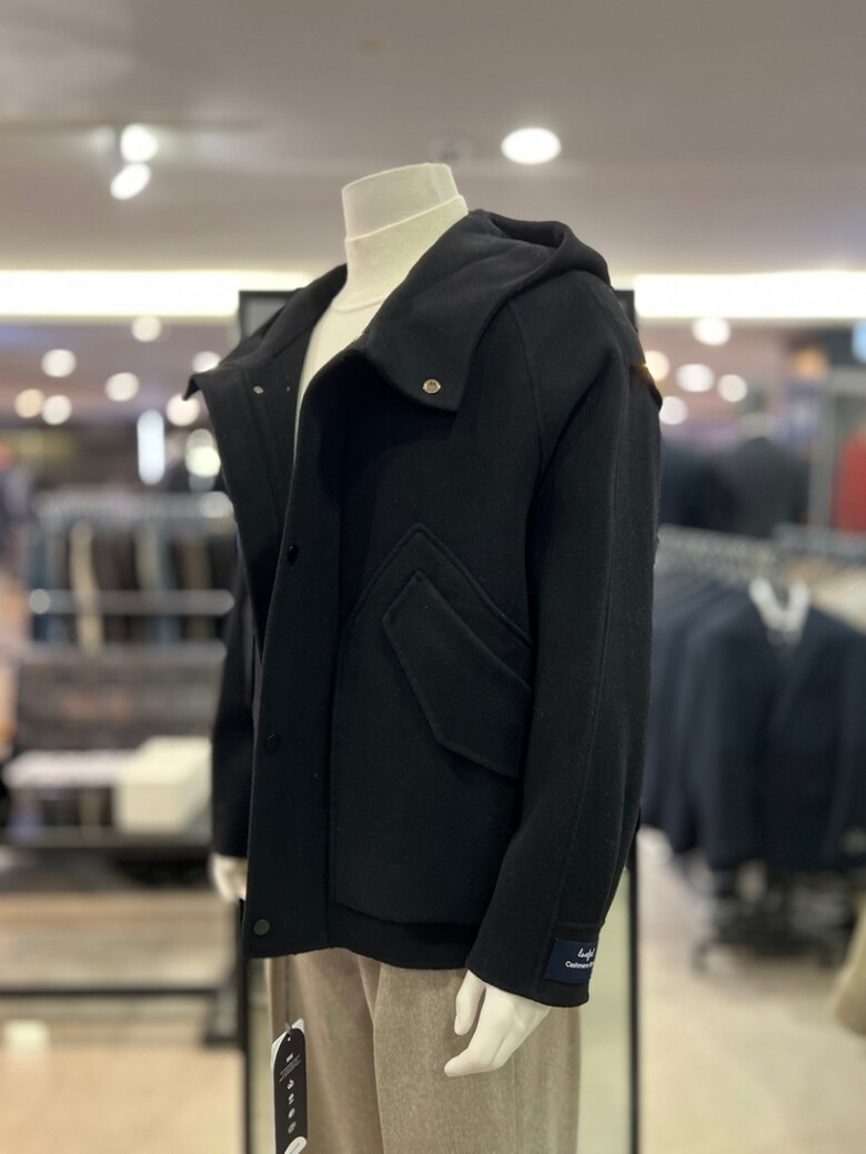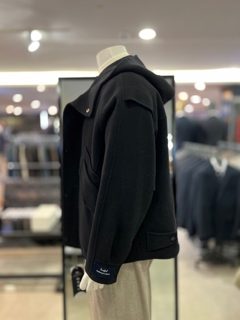 리버클래시 블랙 캐시미어 혼방 구스다운 핸드메이드 숏후드 코트 LKW21493