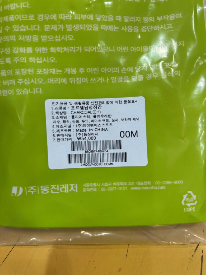| 2. 소재 | 겉감- 폴리에스터 90%, 폴리우레탄 10% |