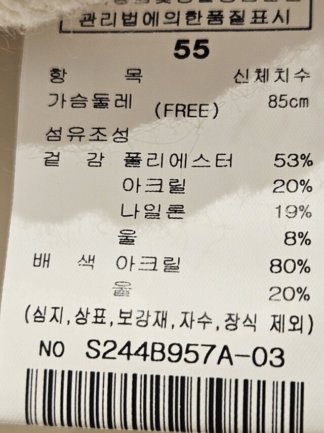 | 6. 세탁방법 및 취급시 주의사항 | 상품상세참조 |