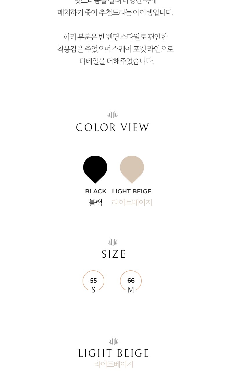 너무너무 예쁘고 질좋고 편해요 @@@ 157에 50키로 55했는데 허리가 낙낙한편이에요 검정으로 한개 더 주문하러 왔습니다 ^^