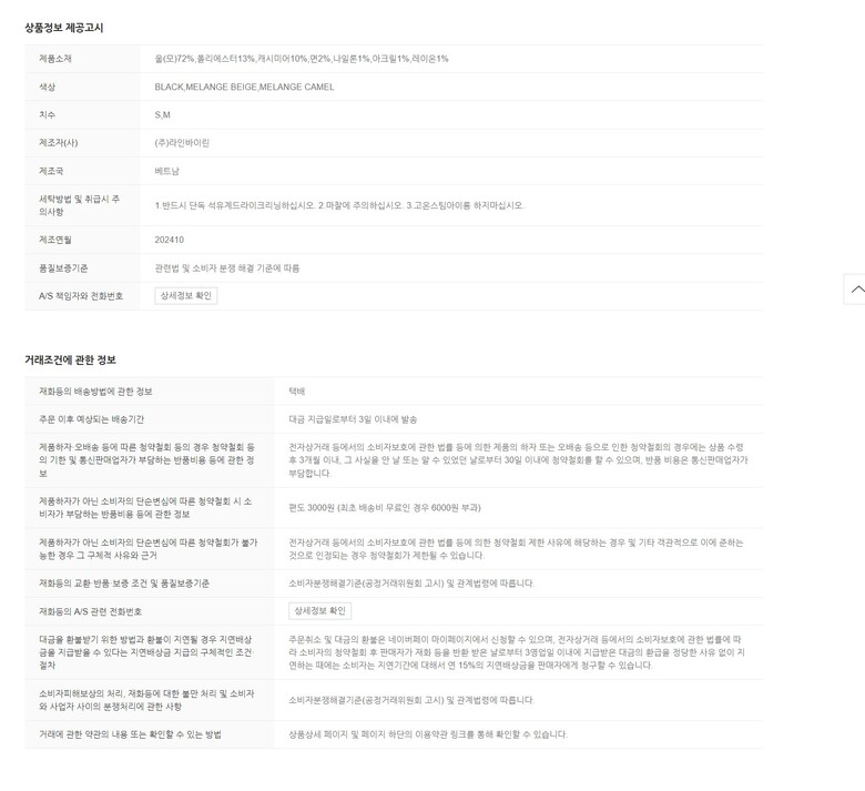 | 6. 세탁방법 및 취급시 주의사항 | 상품상세참조 |