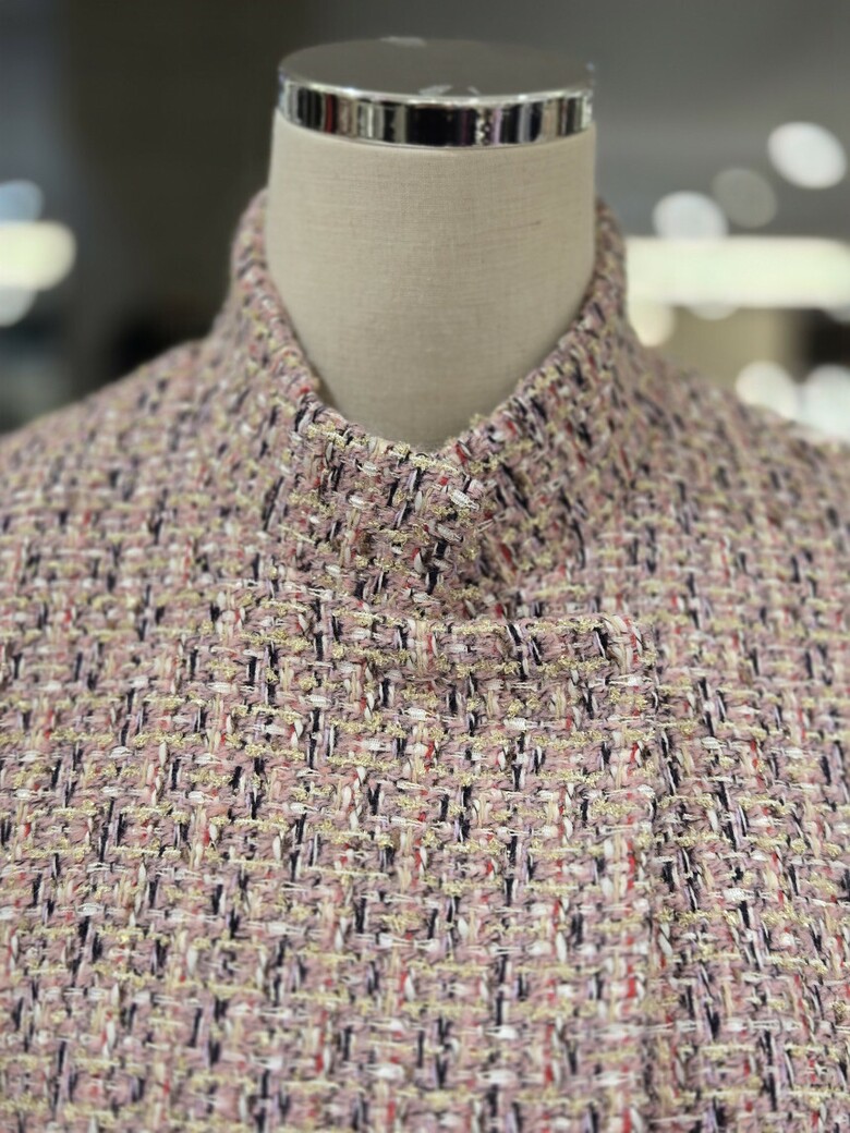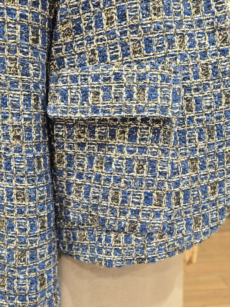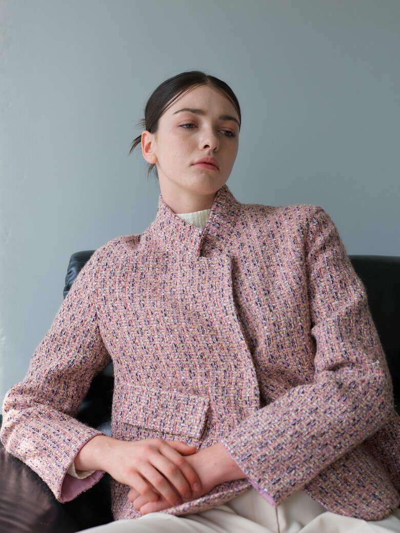 하이넥 포켓 트위드 누빔 자켓