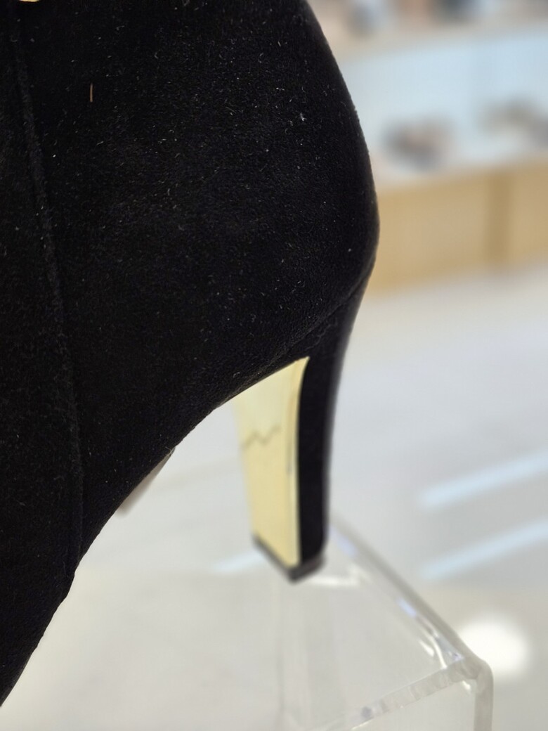 ▶ 골드장식이 들어간 힐굽이 시크한 분위기를 연출함