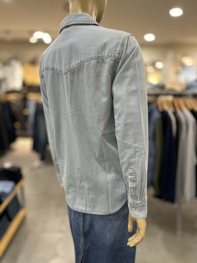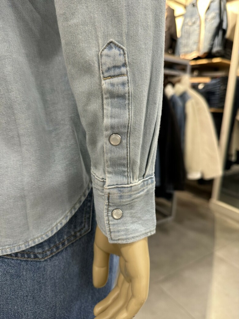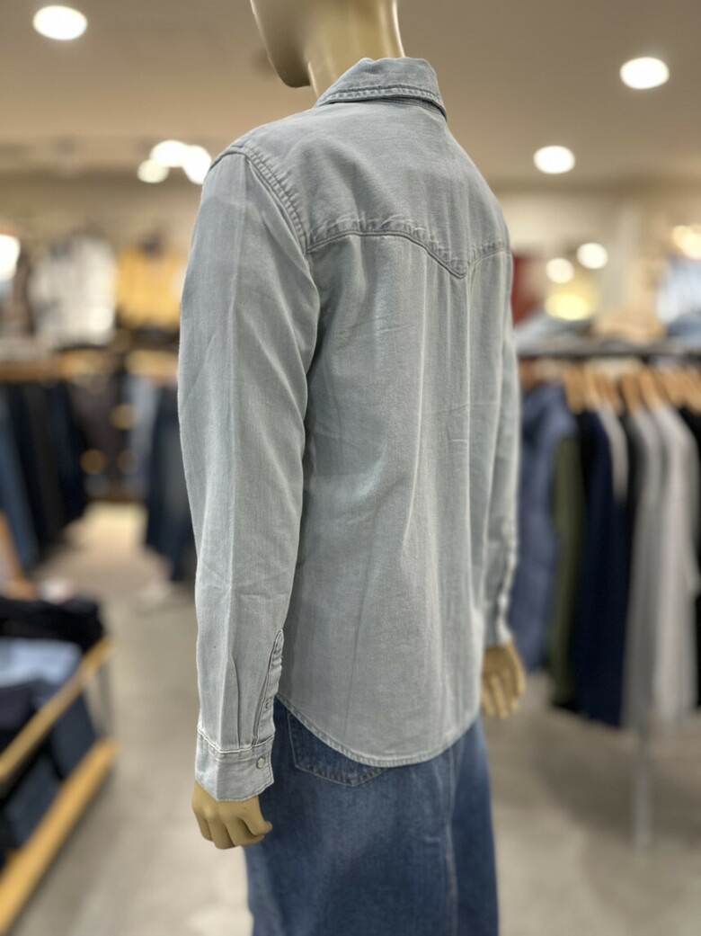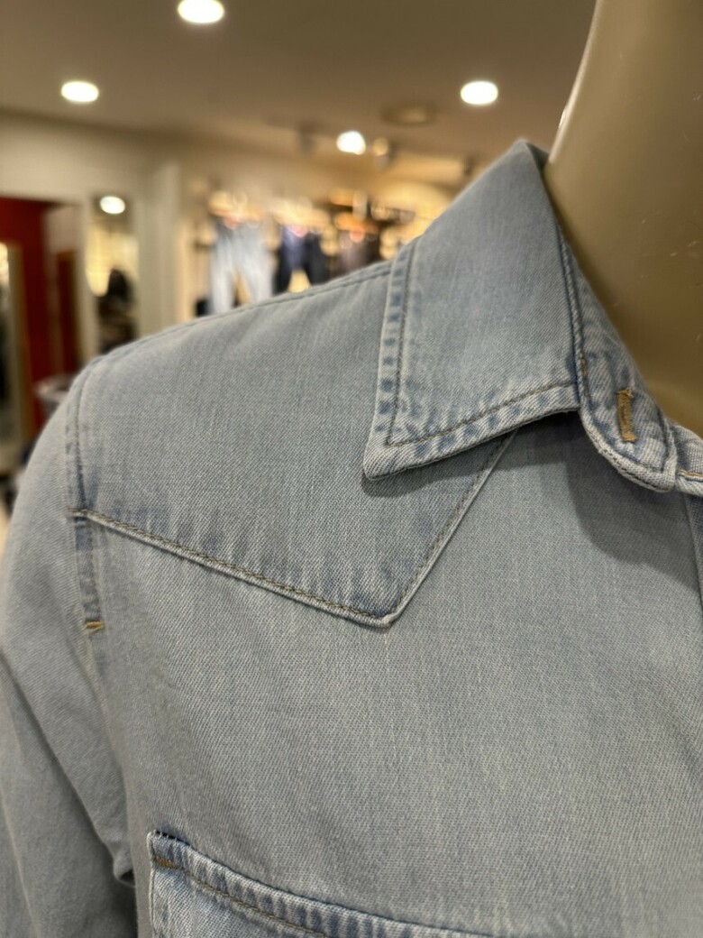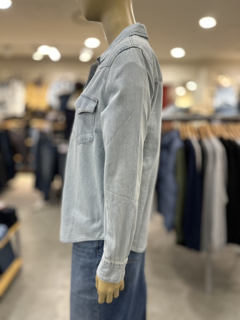 기본 디자인의 데님 셔츠로 어디에나 잘어울리는 데일리한 셔츠로