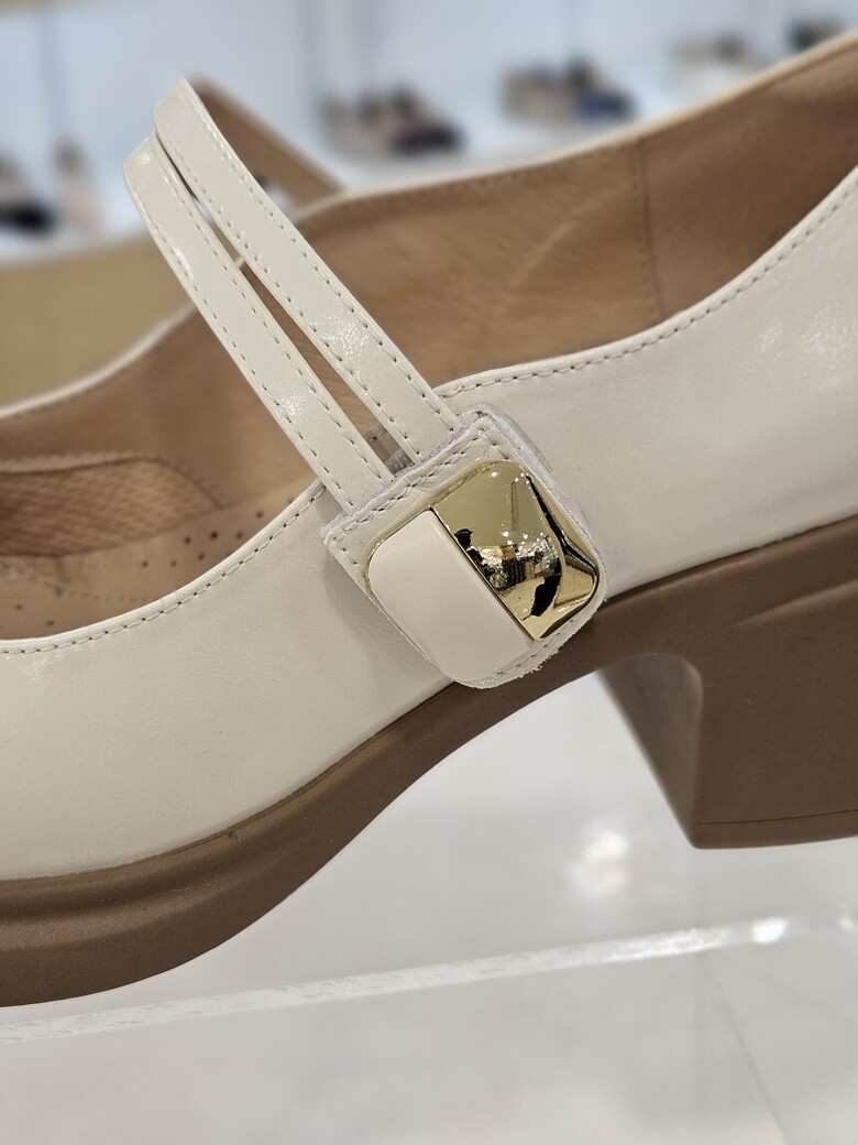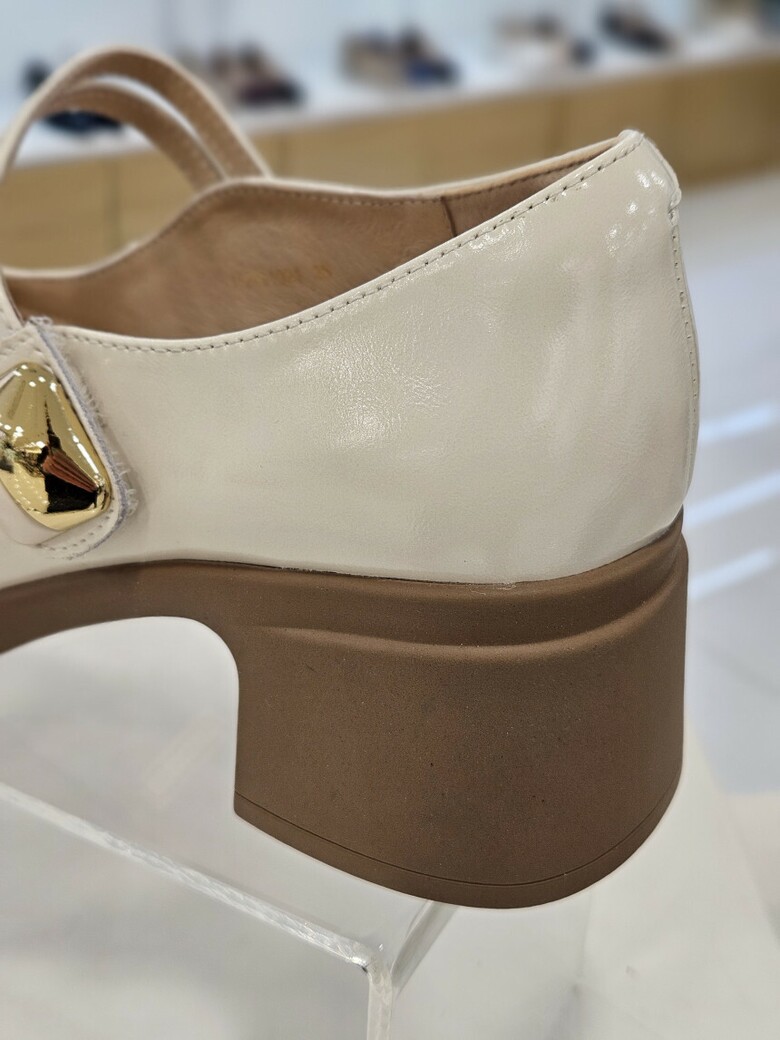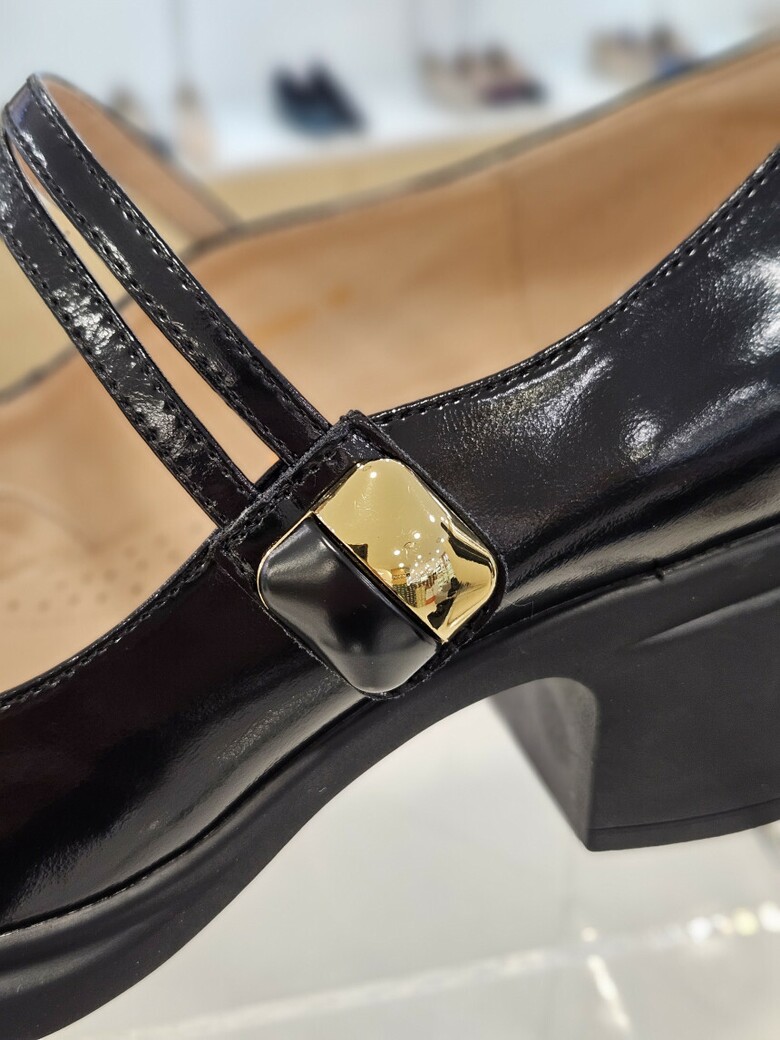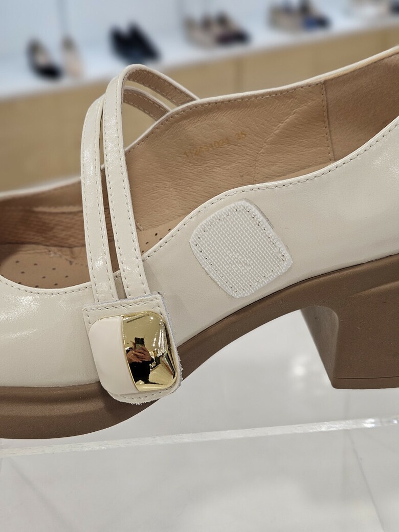 드레스,캐쥬얼 모두 활용하기 좋으며 금색 장식이 포인트로 밸크로 부분에 있어