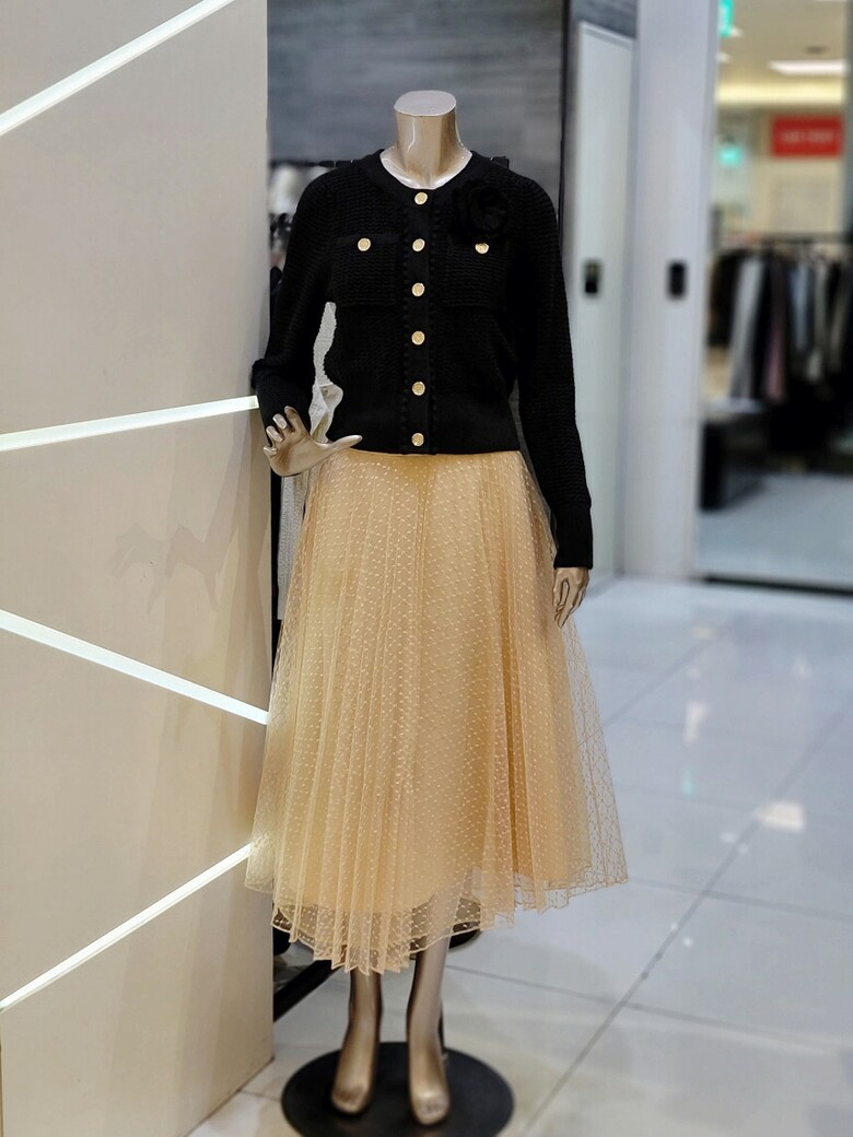 플리츠 주름이 밋밋함 없는 실루엣을 연출하며
