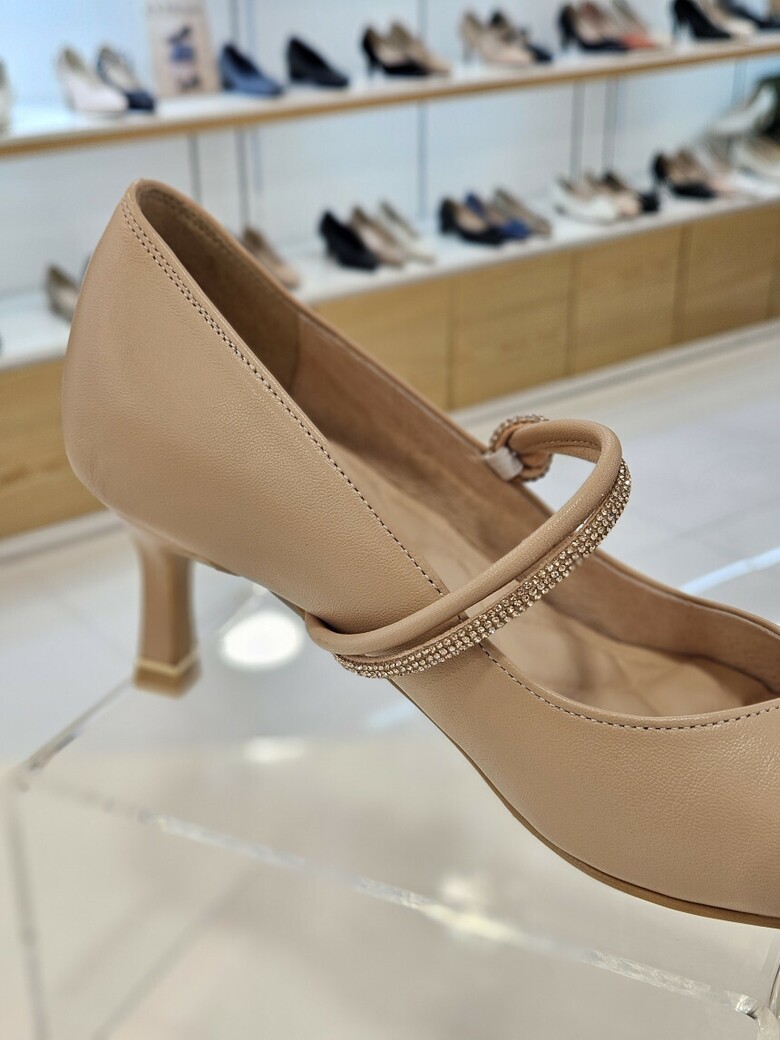 핫픽스줄 콤비의 발등 매듭디테일로 고급스러운 무드를 주는 펌프스