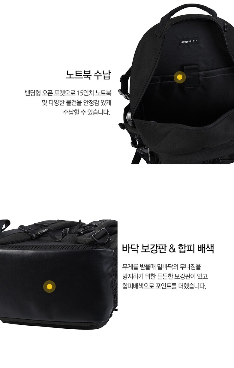 강화했으며 내부 접이식 처짐방지패드를 적용하여 가방의 형태를 잡아줍니다.