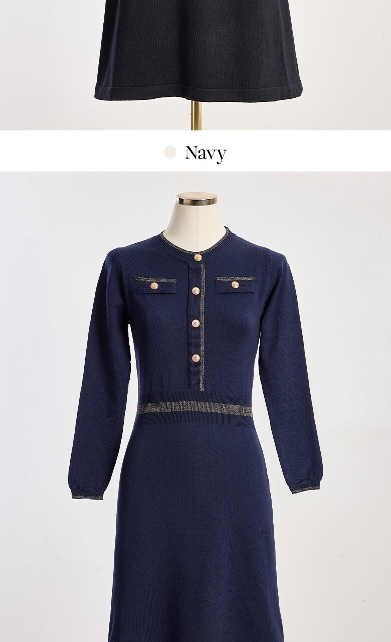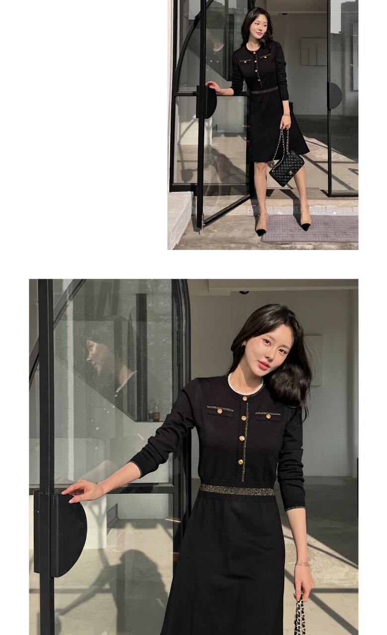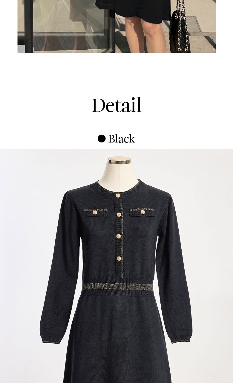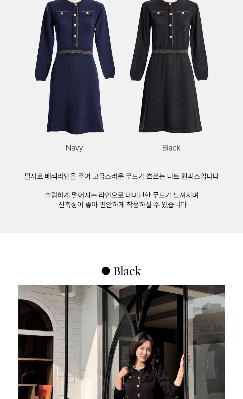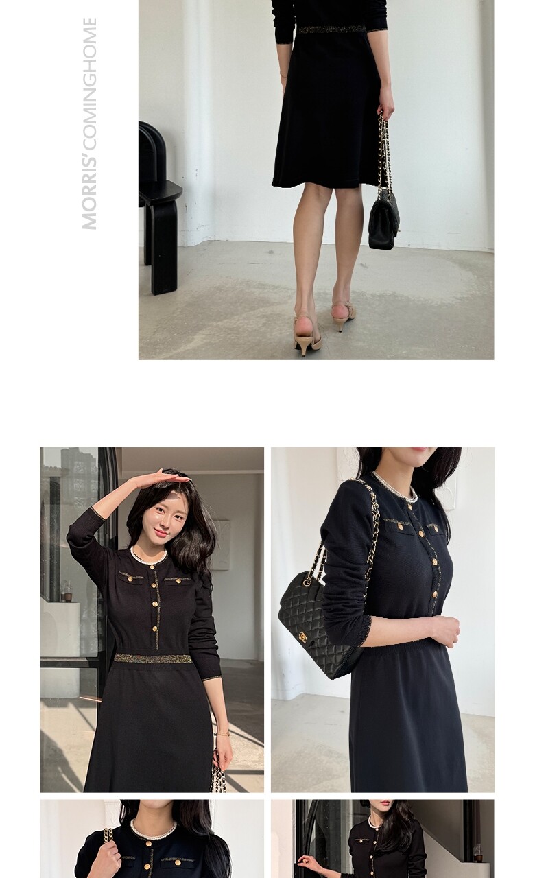 골드 펄 포인트 배색 니트 원피스_M2503OP602A