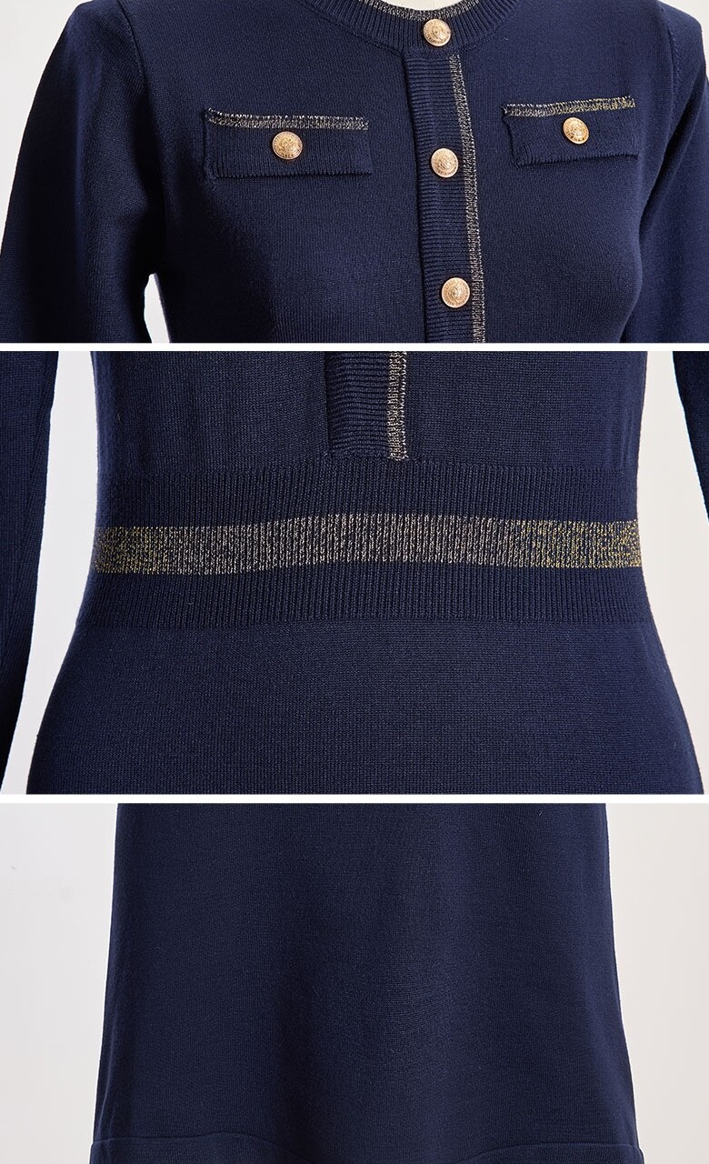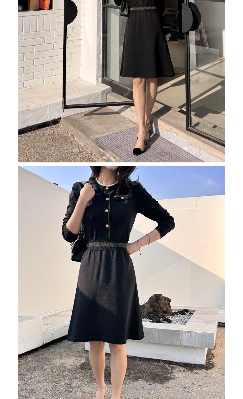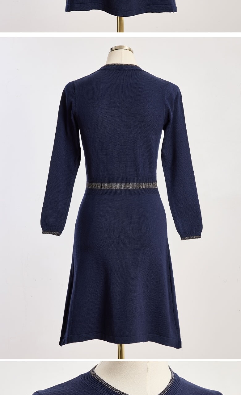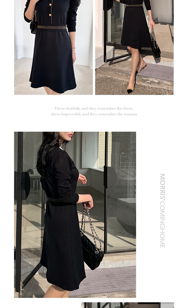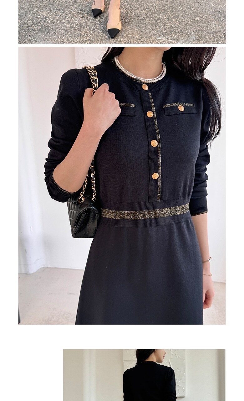 골드 펄 포인트 배색 니트 원피스_M2503OP602A