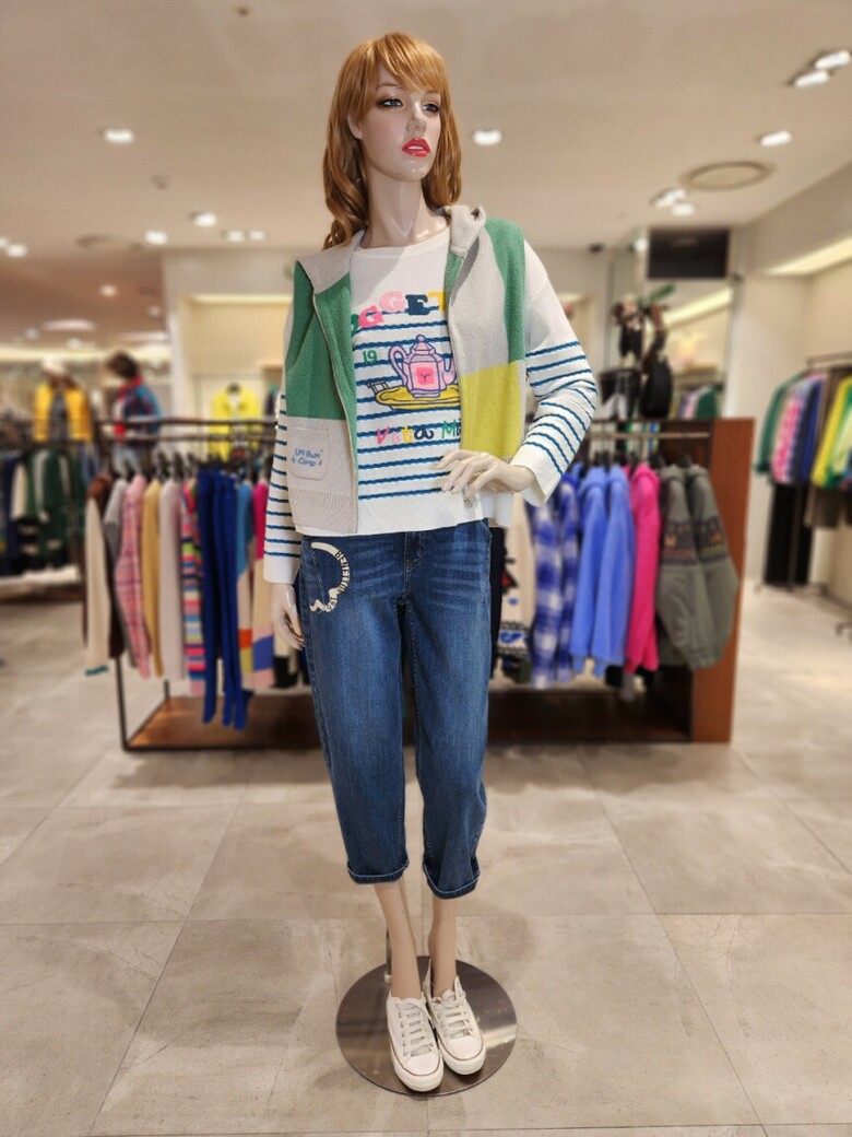 7.니트류는 자가드 프린트 기법으로 제작되어 앞부분에 예쁜 프린트처리가 되어 있습니다