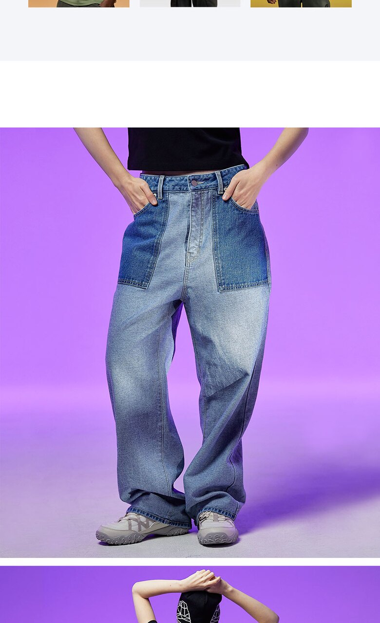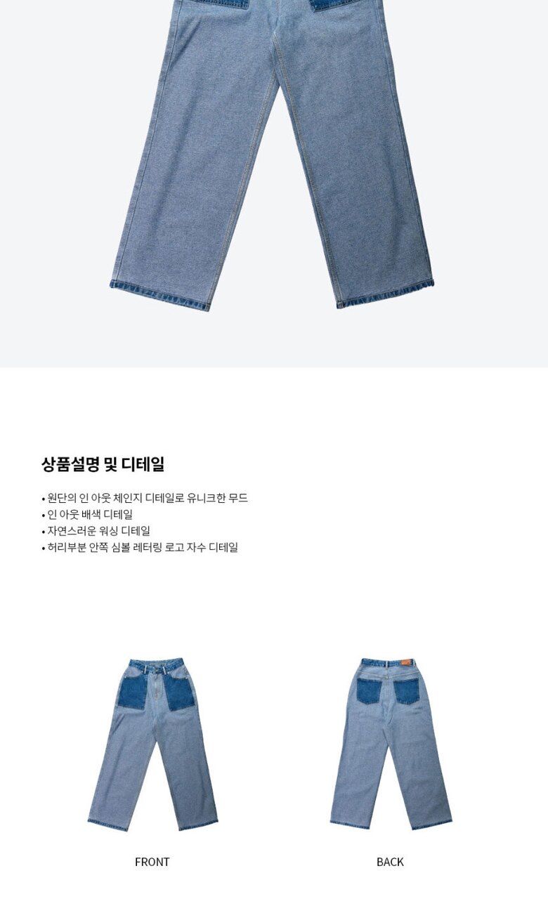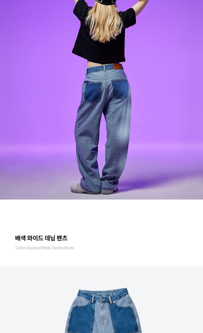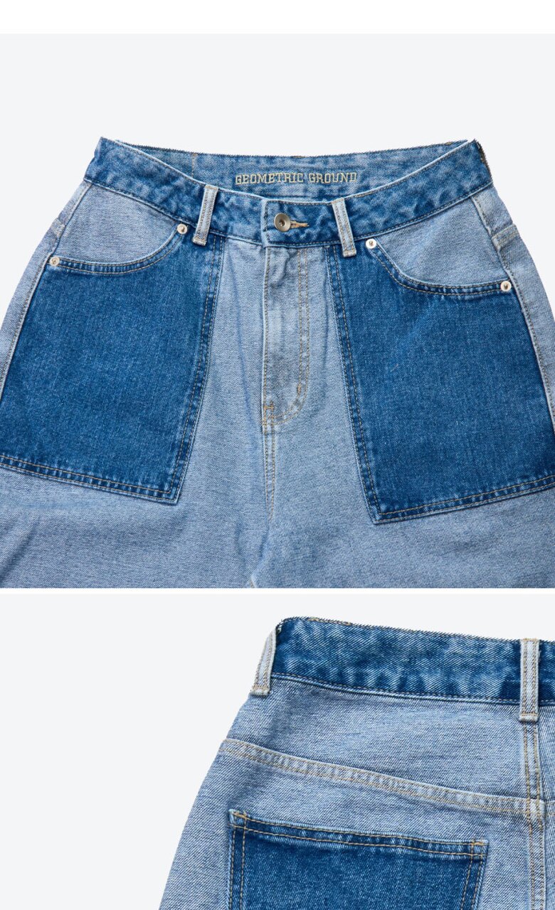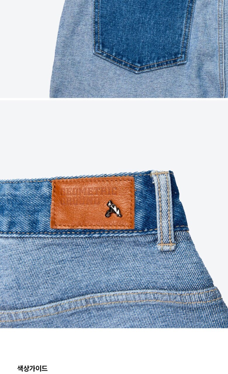 지오메트릭 그라운드 여성 배색 와이드 데님 팬츠 라이트블루