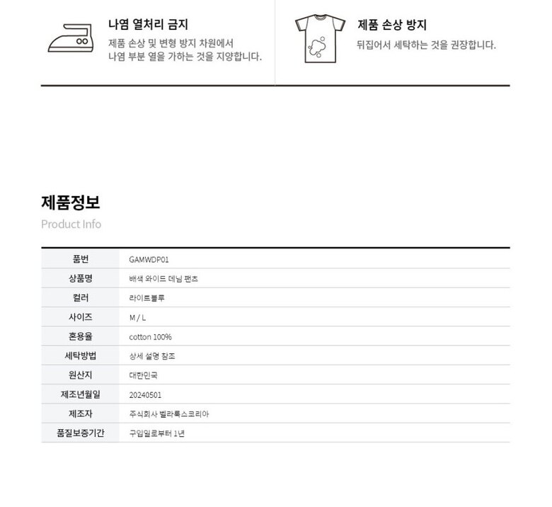 6. 세탁방법 및 취급시 주의사항 | 상품상세 참조 |