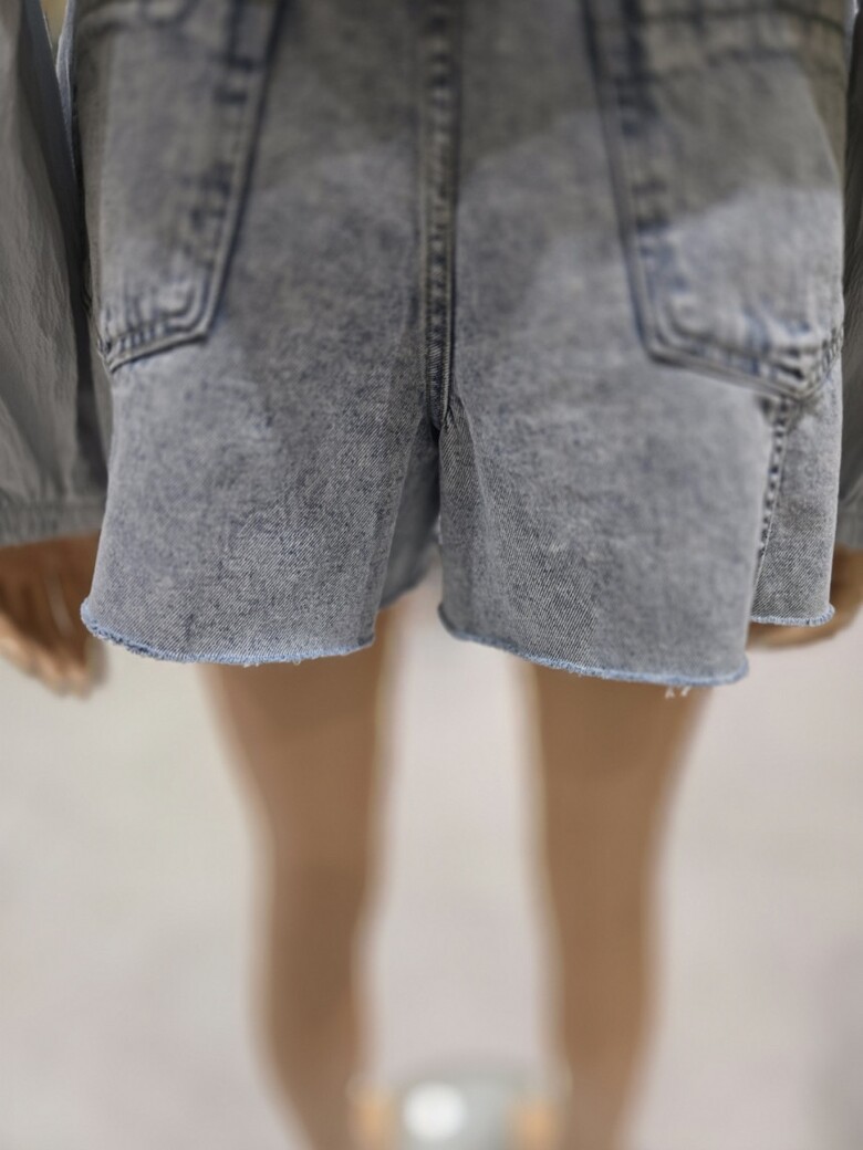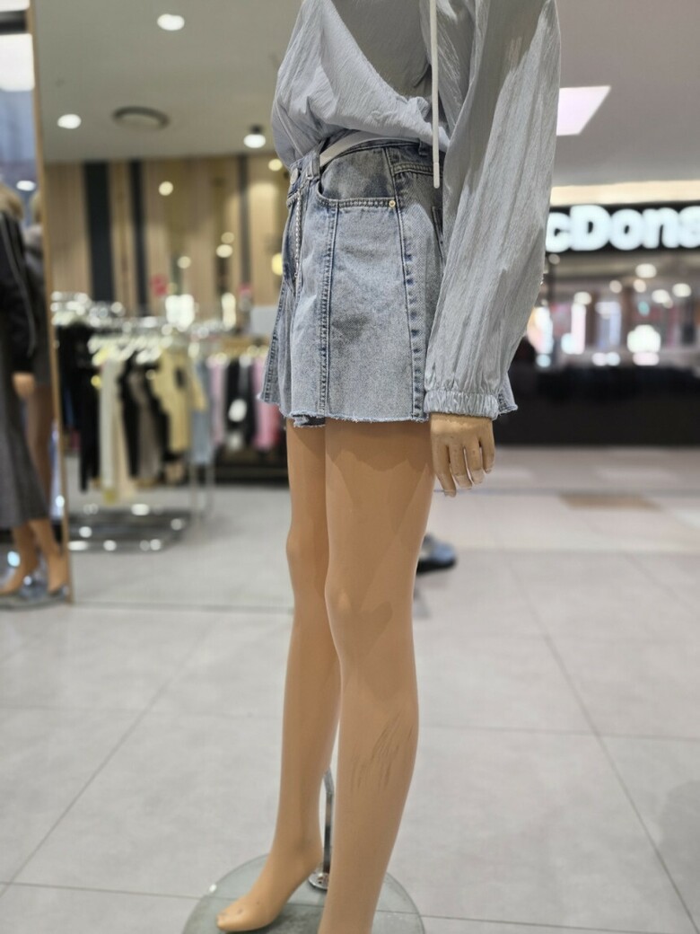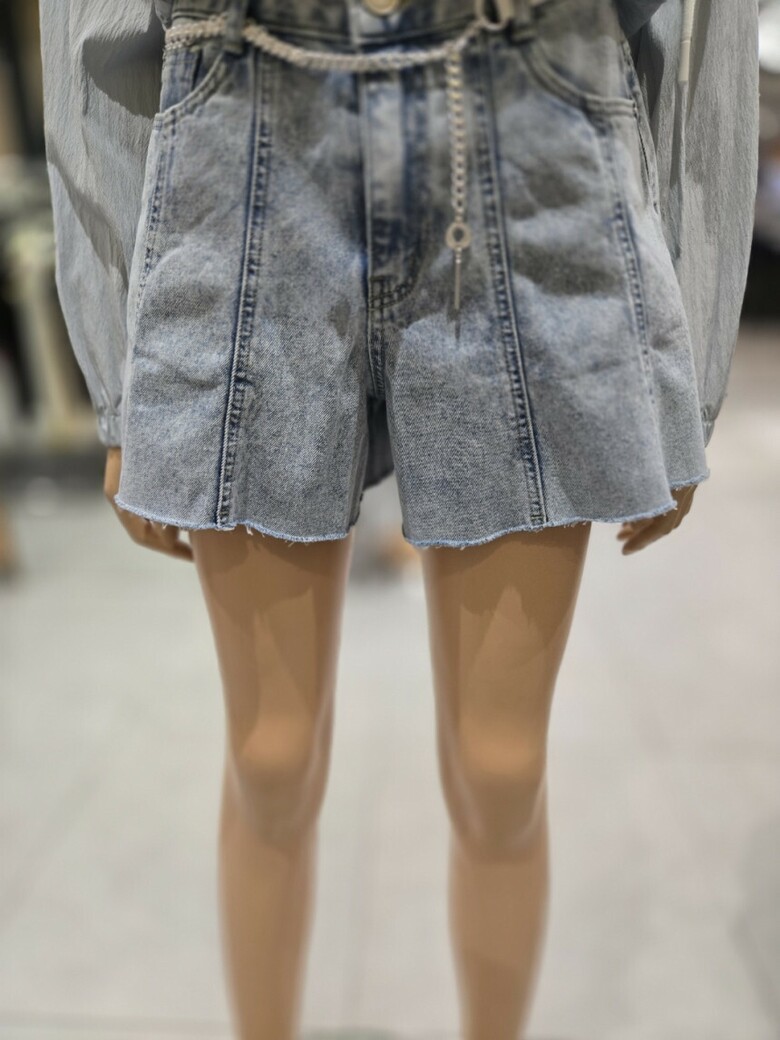절개 포인트 플레어핏 벨티드 숏 데님팬츠 ER2DQ-060