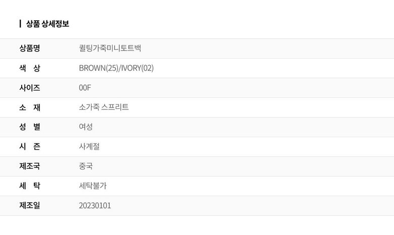 3. 색상 | 색상:BROWN(25)/IVORY(02) |