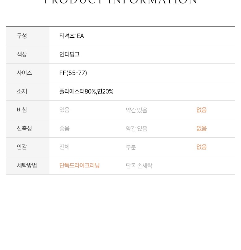 1. 제품 소재 (섬유의 조성 또는 혼용률을 백분율로 표시, 기능성인 경우 성적서 또는 허가서) | 폴리에스터80%,면20% |
