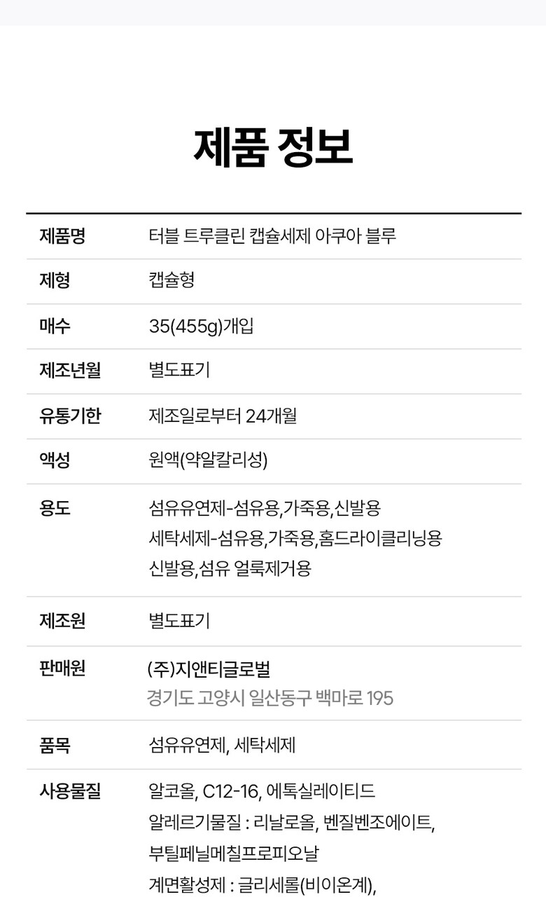 [터블] 트루클린 캡슐 세탁세제 35P(아쿠아블루)